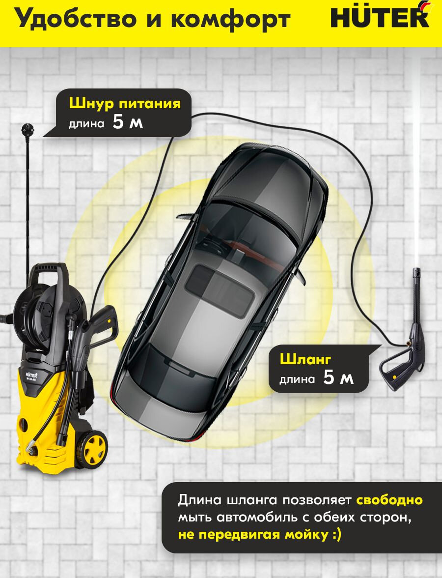 Модельный ряд моек Huter включает множество вариантов исполнения и комплектаций, среди которых каждый покупатель найдёт подходящий вариант.