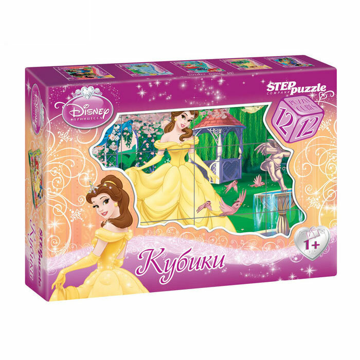 Набор кубиков Белль из серии Дисней от компании Step Puzzle представляет собой развлекательную игрушку. Она состоит 12 кубиков с поверх нанесенным красочным рисунком. Если их правильно собрать вместе, то получится изображение прекрасной девушки в саду и в окружении летающих птичек. Собирание пазла из кубиков развивает пространственное и ассоциативное мышление.