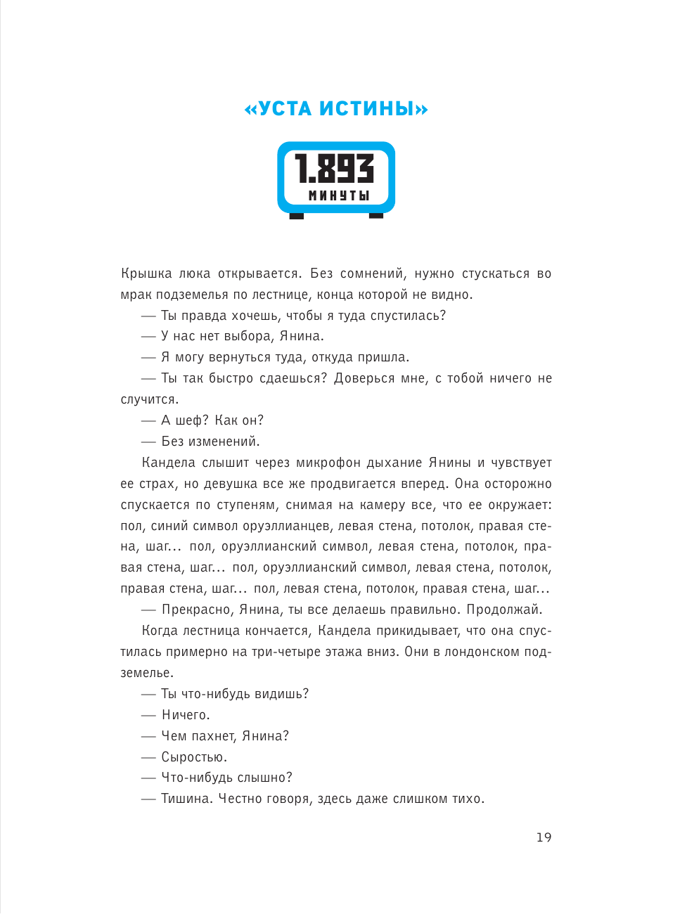 Уже обложка подсказывает черты тайной группы лиц, которую так жаждет найти девушка – «на прохождение квеста 1984 минуты». Догадались? Может словосочетание «Министерство правды» вам что-то подскажет? Ах, да о чем это я? Ведь в аннотации есть их название - Оруэллианцы.