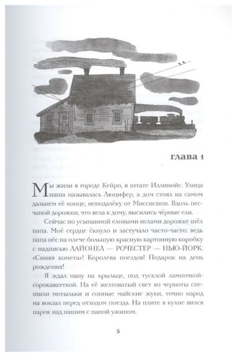 "Синяя Комета" - королева поездов. Каждый мальчишка мечтает получить её в подарок. Оскар Огилви и его отец выстроили в подвале почти настоящую Трансконтинентальную железную дорогу - с горами, каньонами, мостами и знаменитыми локомотивами. Но начинается Великая депрессия, отец уезжает в дальние края искать работу, а "Синяя комета" ходит теперь по рельсам в вестибюле банка… По счастью, Оскар подружился с мистером Эпплгейтом - учителем математики и последователем Эйнштейна. Неужели правда, что время похоже на реку, по берегам которой находятся одновременно все эпохи? Оскар пересечёт всю Америку - во времени и пространстве - попадёт из 1931 года в 1941, а потом в 1926, из Чикаго в Калифорнию, а потом в Нью-Йорк. Но чем закончится это невероятное путешествие? Сможет ли Оскар вернуться домой?