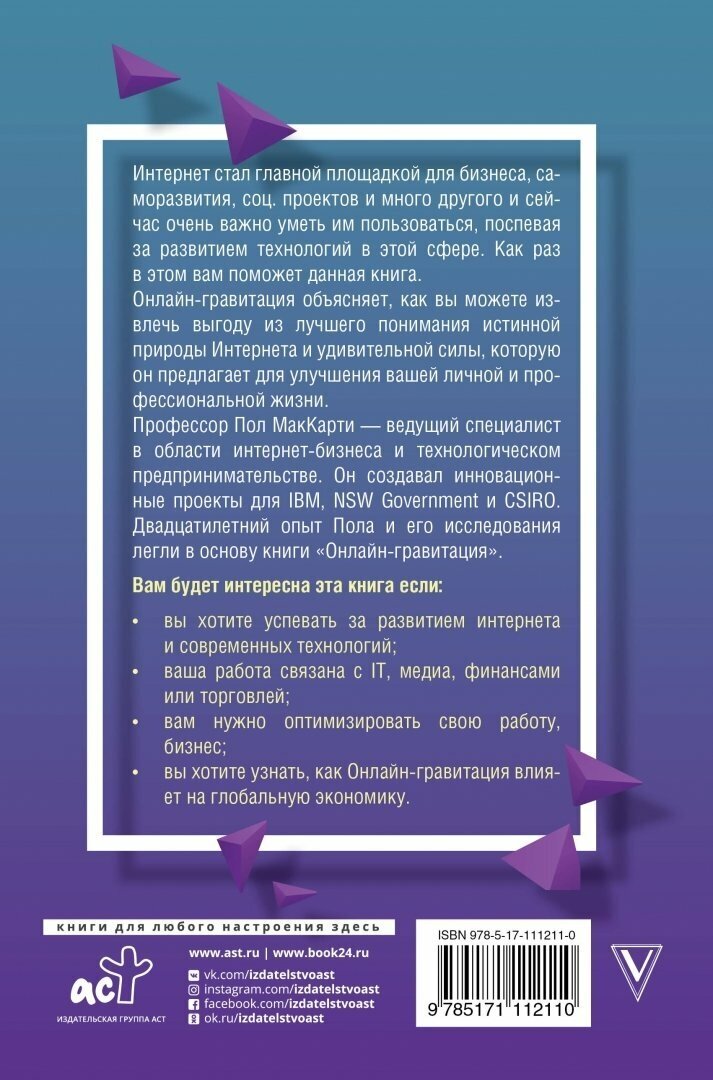 Профессор Пол МакКарти - ведущий специалист в области интернет-бизнеса и технологическом предпринимательстве. Он создавал инновационные проекты для IBM, NSW Government и CSIRO. Двадцатилетний опыт Пола и его исследования легли в основу книги "Онлайн-гравитация".