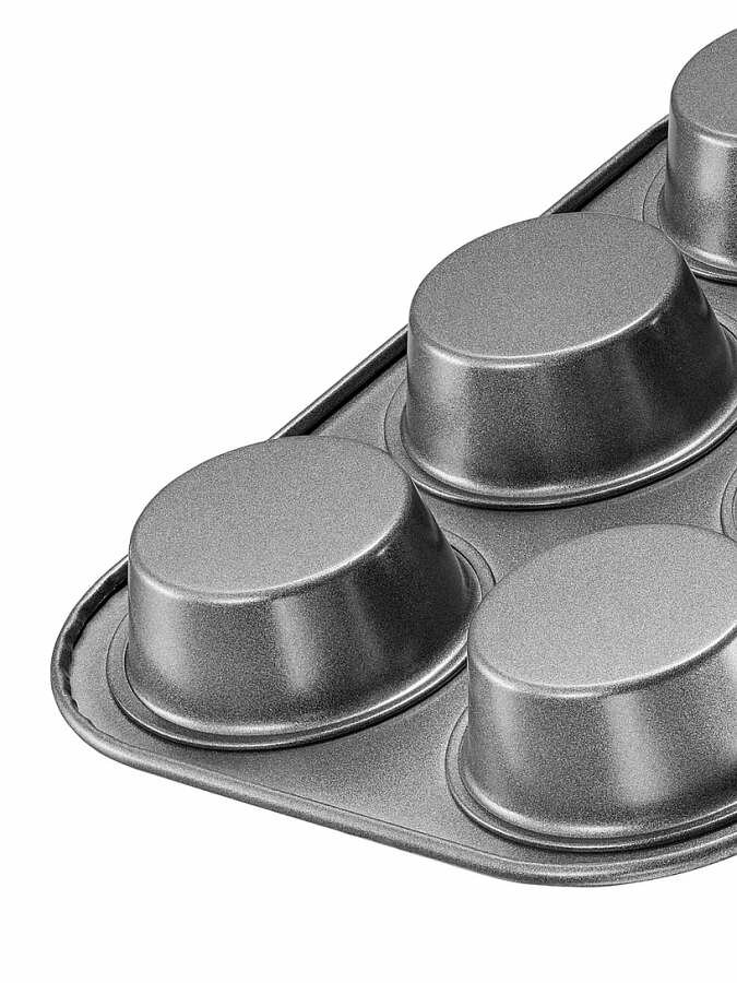 Эта прекрасная форма Linea EASY от Regent Inox подходит для выпекания кексов, капкейков или маффинов. В изделии легко и удобно готовить - оно равномерно и быстро разогревается, что способствовать наилучшему пропеканию еды. Посуду легко очищать и отмывать. Форма отлично выдерживает самые высокие температуры в духовке, не выделяя вредных веществ. Данная модель разделена на 6 ячеек и имеет размер 27х18х3 см. Посуда выполнена из высококачественной углеродистой стали и снабжена антипригарным покрытием, что обеспечивает ей прочность и долговечность.