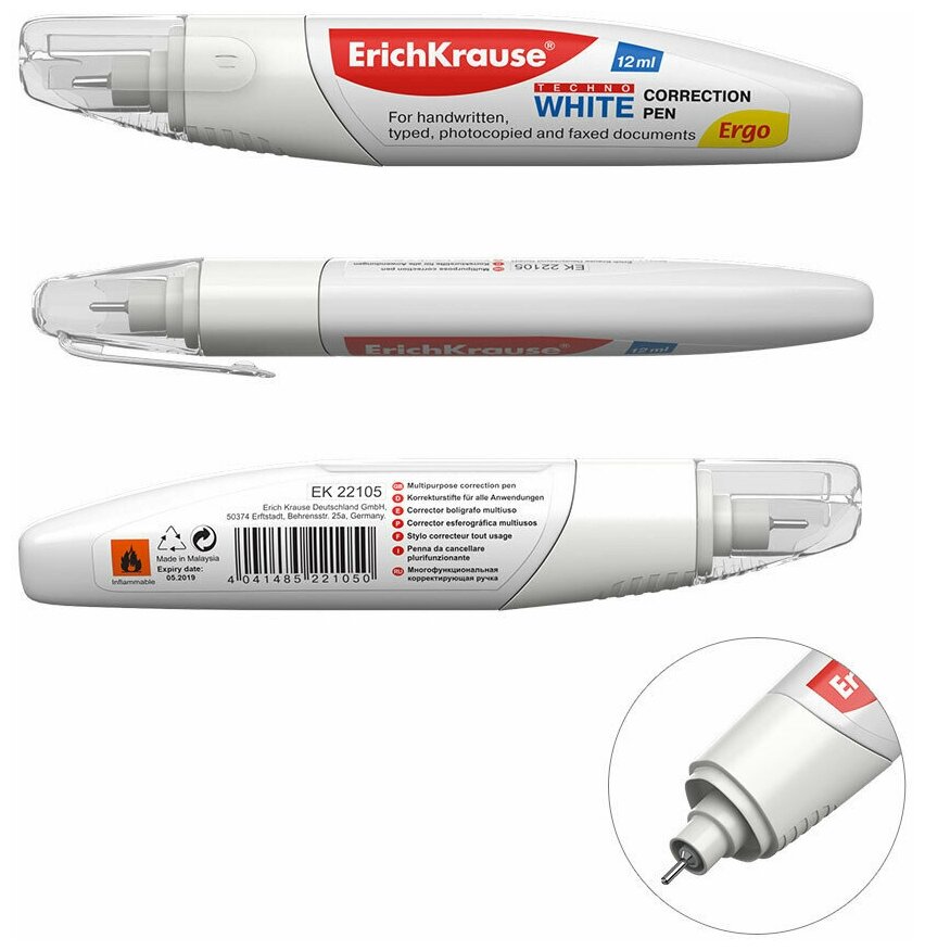 Ручка-корректор Erich Krause Techno white Ergo 12 мл (22105)