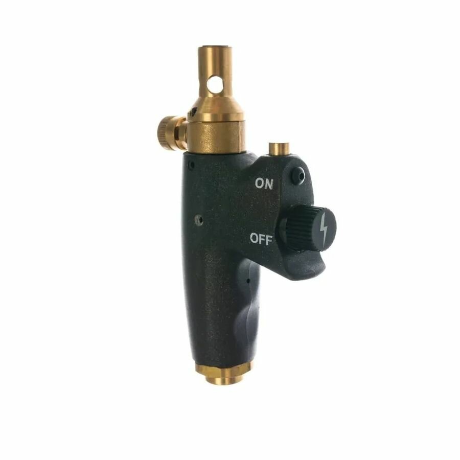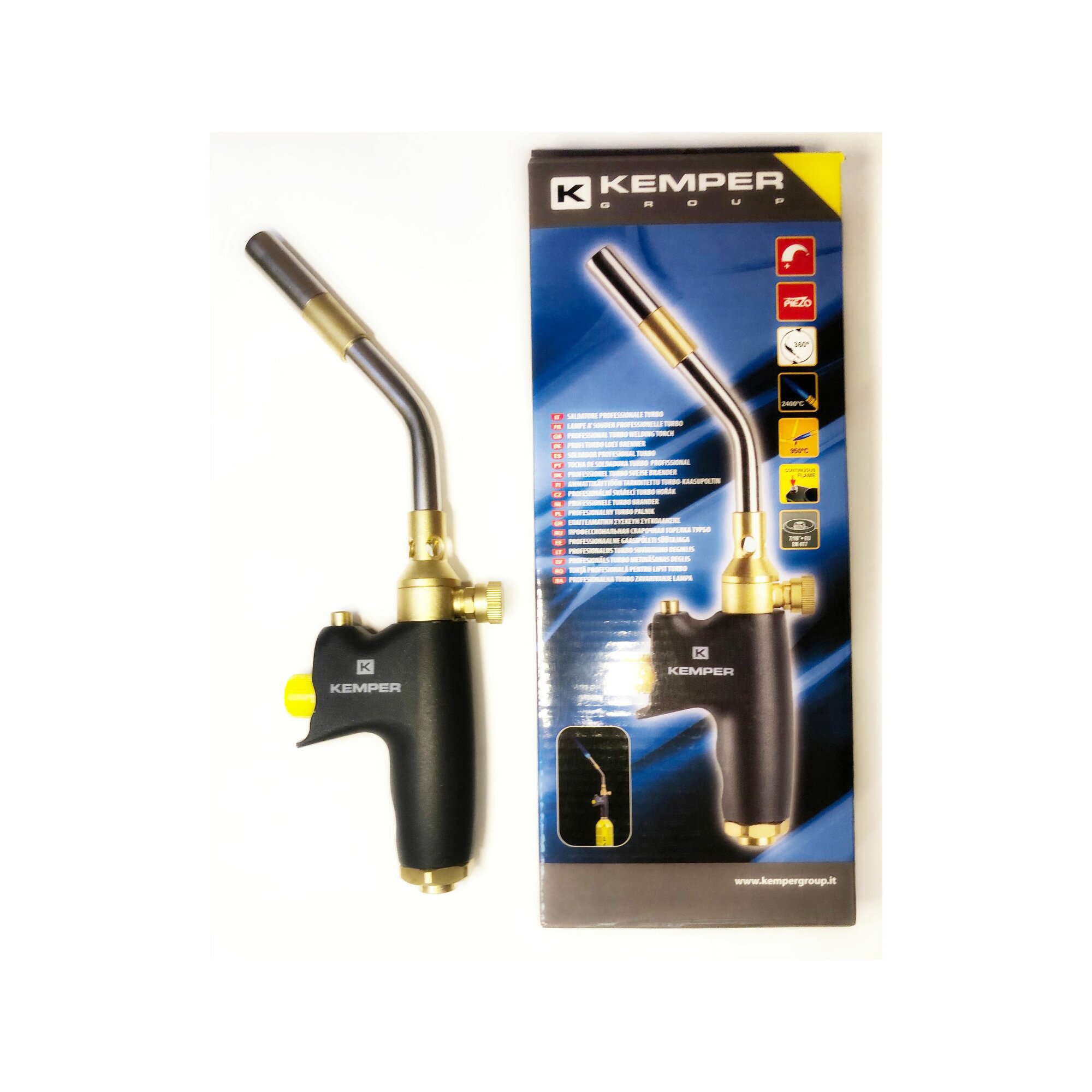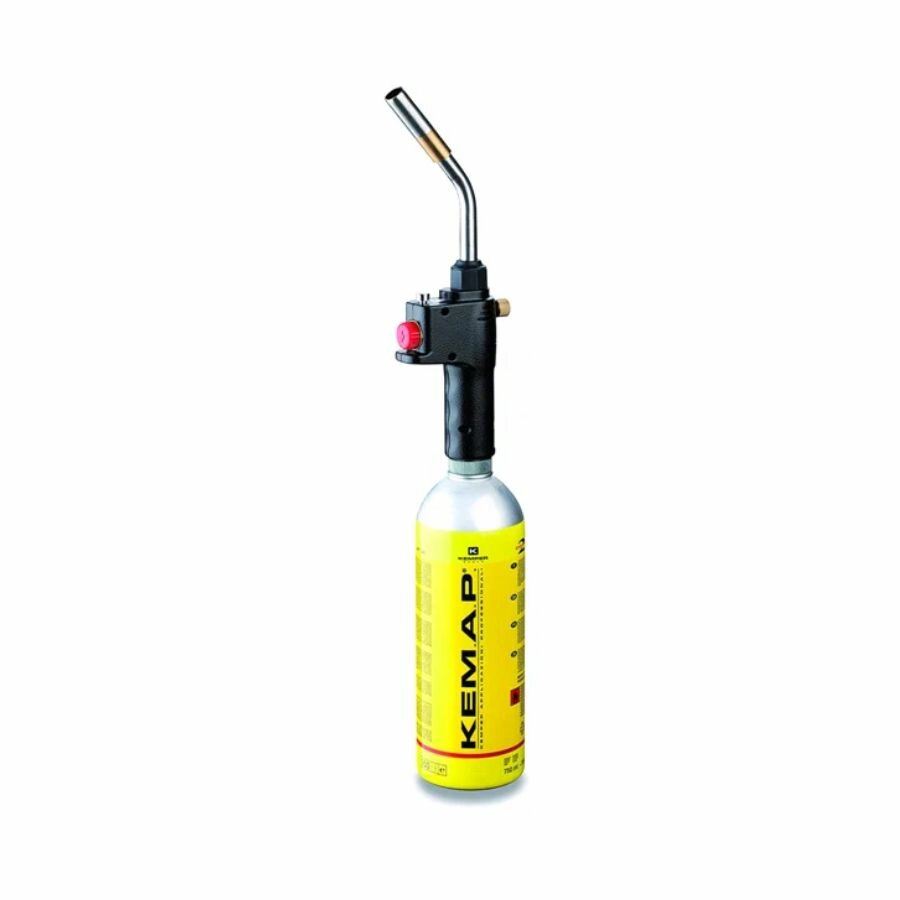 Профессиональная газовая паяльная лампа KEMPER 1062E.Оснащена системой пьезоподжига, нагрева газа, регулировки пламени и кнопкой вкл/выкл подачи газа. Имеет алюминиевую рукоятку с удобным захватом. Уникальная насадка с эффектом вихря формирует несколько потоков пламени. Благодаря вихревому эффекту уменьшается время пайки.Мощность: до 3,3 кВт.Рассчитана на температуру до 2500 °С.Максимальный расход газа: 243 гр./час.Резьба: 7/16.Для работы рекомендуется резьбовой баллон Kemper: 581.А так же: 575, 576, 580, 580S, 1121F, PL411P, PL411C, PL401P.Поставляется без баллона.