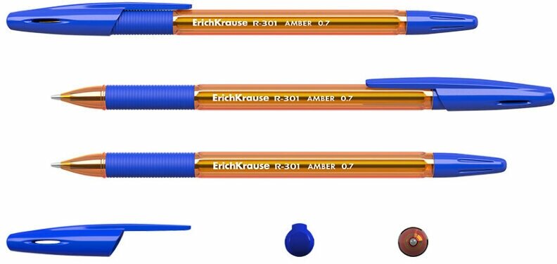 Ручка шариковая Erich Krause R-301 Amber 0.7 Stick&Grip в наборе из 3 штук пакет (42748)