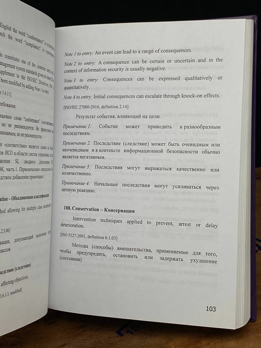 Я приобрел эту книгу, чтобы расширить свой словарный запас в области управления документами и архивов на английском языке. И я не был разочарован. Книга содержит богатый выбор терминов, используемых в этой области, и их перевод на русский язык. Словарь стандартизированной терминологии охватывает все ключевые аспекты управления документами и архивами, от организации документов до их уничтожения. Каждый термин снабжен подробным объяснением, что делает книгу полезной не только для переводчиков, но и для всех, кто работает с документами и архивами. Книга очень хорошо организована и легко читается. Я нашел много новых и интересных терминов, которые я могу использовать в своей работе. Большим плюсом является то, что терминология в книге является стандартизированной, что облегчает понимание и использование терминов.