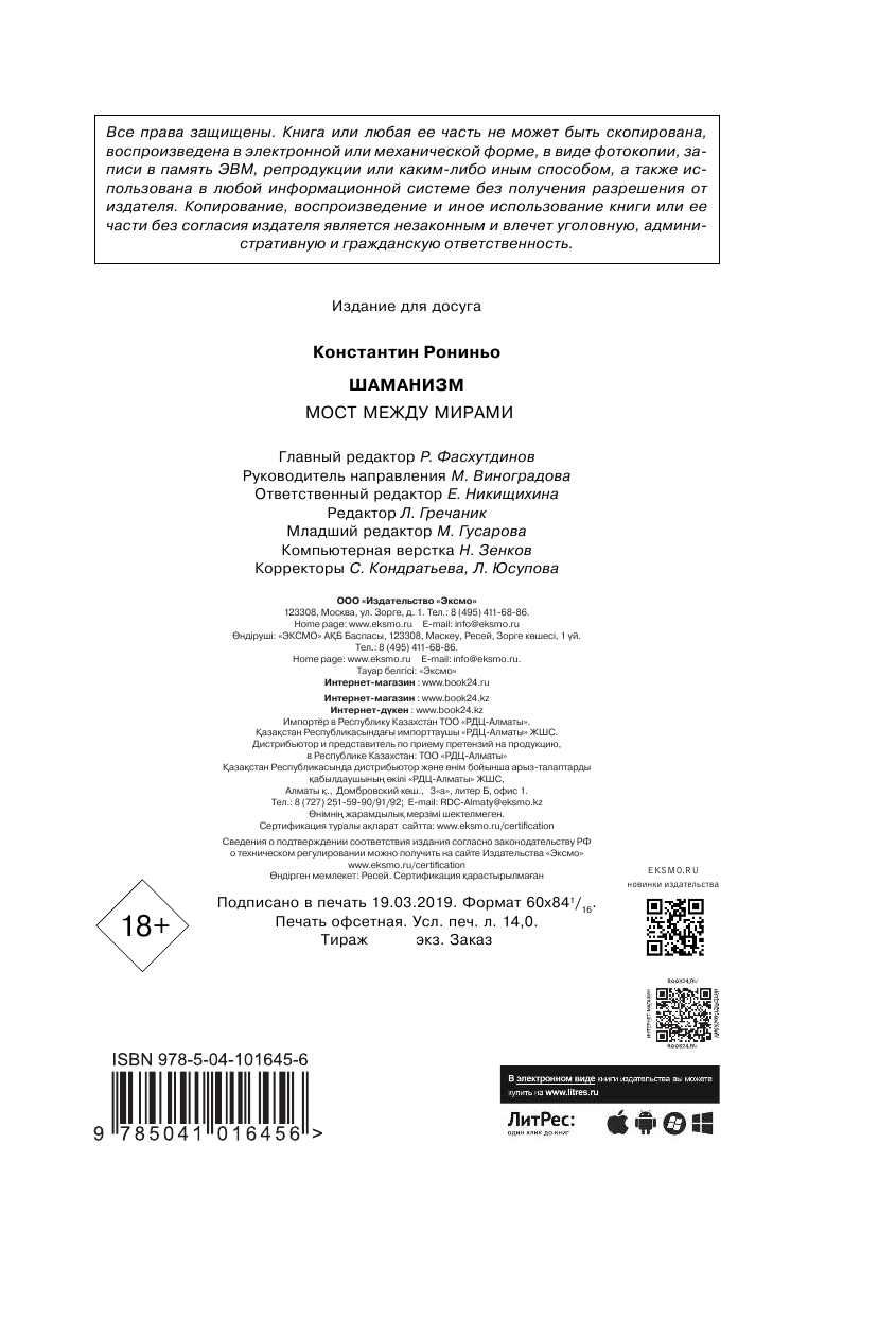 Сервис сравнения цен СкидкаГИД предлагает сравнить цены на товар «Книга: Шаманизм. Мост между мирами (Рониньо К.); ООО "Издательство "Эксмо", 2019»