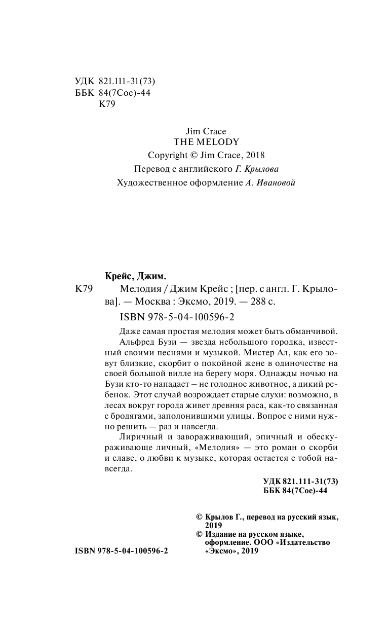 Книга: Мелодия (Крылов Григорий Александрович (переводчик), Крейс Джим); Эксмо, 2019