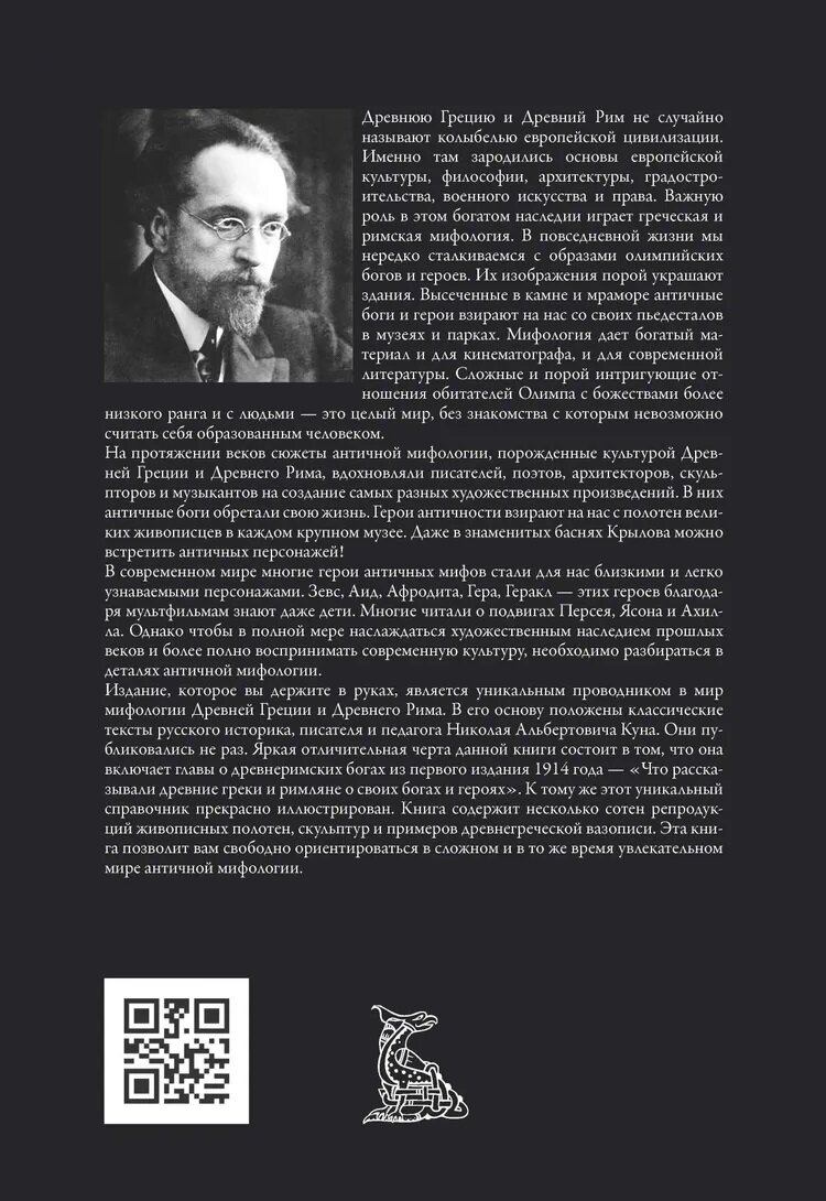 "Легенды и мифы Древней Греции и Древнего Рима" - это уникальное издание, которое станет незаменимым помощником для всех, кто интересуется античной мифологией и хочет глубже погрузиться в ее мир.Книга представляет собой сборник классических текстов русского историка, писателя и педагога Николая Куна, которые публиковались неоднократно. В основу издания положены главы о древнеримской мифологии из первого издания 1914 года "Что рассказывали древние греки и римляне о своих богах и героях".Уникальность книги заключается в том, что она прекрасно иллюстрирована. В издание включены несколько сотен репродукций живописных полотен, скульптур и примеров древнегреческой вазописи. Это позволяет читателю погрузиться в мир античной мифологии и увидеть его героев в новом свете.Книга имеет твердый переплет и содержит 576 страниц. Ее размеры составляют 24,6 х 17,6 х 3 см, что делает ее удобной для чтения и хранения.Издание выпущено в 2019 году издательством сзкэо и является частью серии "Библиотека мировой литературы"."Легенды и мифы Древней Греции и Древнего Рима" - это не просто книга, это путешествие в мир античной мифологии, который стал основой европейской культуры и искусства.Древнюю Грецию и Древний Рим не случайно называют колыбелью европейской цивилизации. Именно там зародились основы европейской культуры, философии, архитектуры, градостроительства, военного искусства и права. Важную роль в этом богатом наследии играет греческая и римская мифология. В повседневной жизни мы нередко сталкиваемся с образами олимпийских богов и героев. Их изображения порой украшают здания. Высеченные в камне и мраморе античные боги и герои взирают на нас со своих пьедесталов в музеях и парках. Мифология дает богатый материал и для кинематографа, и для современной литературы. Сложные и порой интригующие отношения обитателей Олимпа с божествами более низкого ранга и с людьми — это целый мир, без знакомства с которым невозможно считать себя образованным человеком. На протяжении веков сюжеты античной мифологии, порожденные культурой Древней Греции и Древнего Рима, вдохновляли писателей, поэтов, архитекторов, скульпторов и музыкантов на создание самых разных художественных произведений. В них античные боги обретали свою жизнь. Герои античности взирают на нас с полотен великих живописцев в каждом крупном музее. Даже в знаменитых баснях Крылова можно встретить античных персонажей! В современном мире многие герои античных мифов стали для нас близкими и легко узнаваемыми персонажами. Зевс, Аид, Афродита, Гера, Геракл — этих героев благодаря мультфильмам знают даже дети. Многие читали о подвигах Персея, Ясона и Ахилла. Однако чтобы в полной мере наслаждаться художественным наследием прошлых веков и более полно воспринимать современную культуру, необходимо разбираться в деталях античной мифологии. Издание, которое вы держите в руках, является уникальным проводником в мир мифологии Древней Греции и Древнего Рима. В его основу положены классические тексты русского историка, писателя и педагога Николая Альбертовича Куна. Они публиковались не раз. Яркая отличительная черта данной книги состоит в том, что она включает главы о древнеримских богах из первого издания 1914 года — «Что рассказывали древние греки и римляне о своих богах и героях». К тому же этот уник
