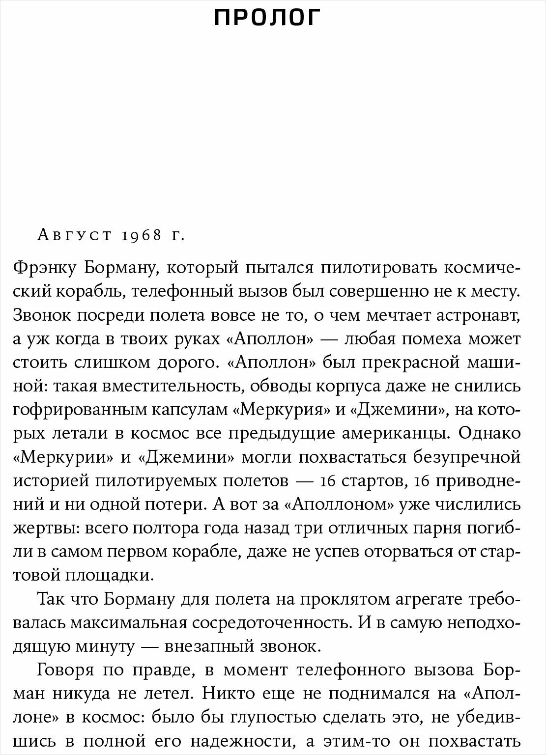 Хорошая книга, заслуживает прочтения и запомнится всем интересующимся историей космонавтики. Есть проблемы перевода и некоторые фразы звучат коряво, но содержание эти огрехи окупает. Правдиво описана кухня космических полётов и гонка между США и СССР за первенство в космических достижениях. Не только наших гнали в космос на непроверенной технике! Ребят в книге тоже запустили к Луне при очень больших сомнениях в успехе полёта и возвращении на землю. Рекомендую!