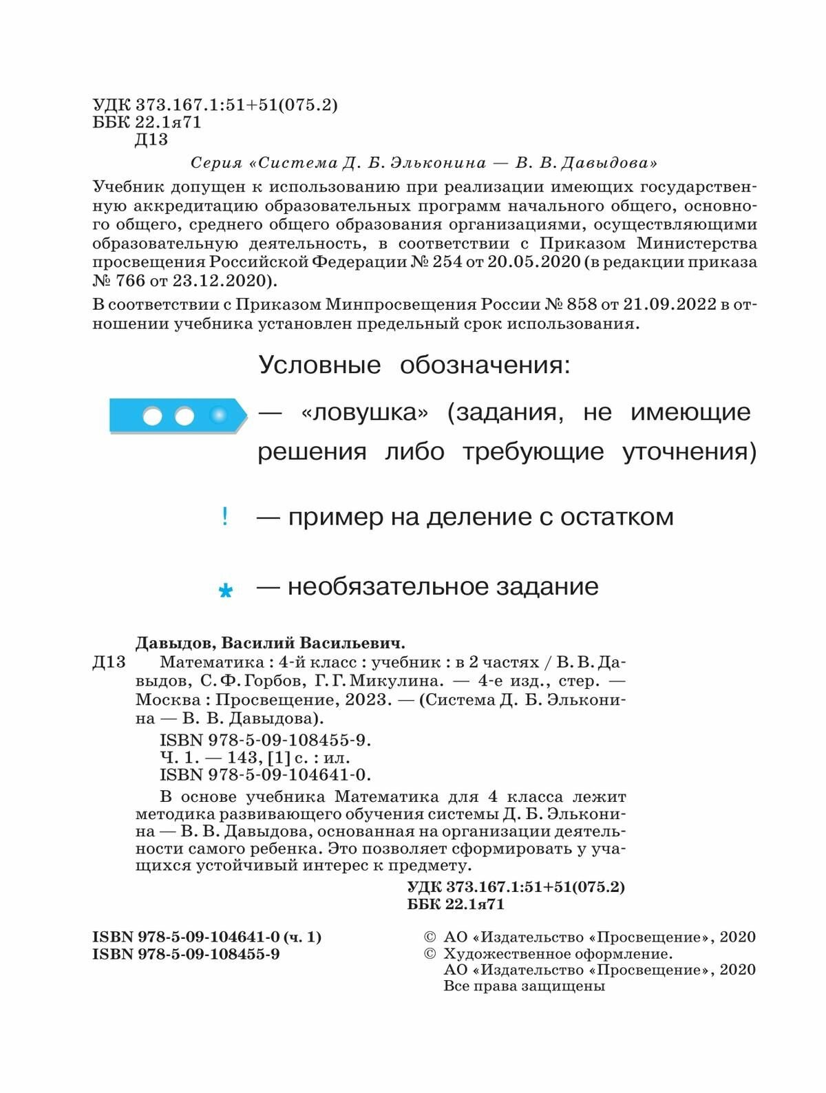 | Серия | Система Эльконина-Давыдова. Математика. Давыдов В.В. и др. (1-4) |