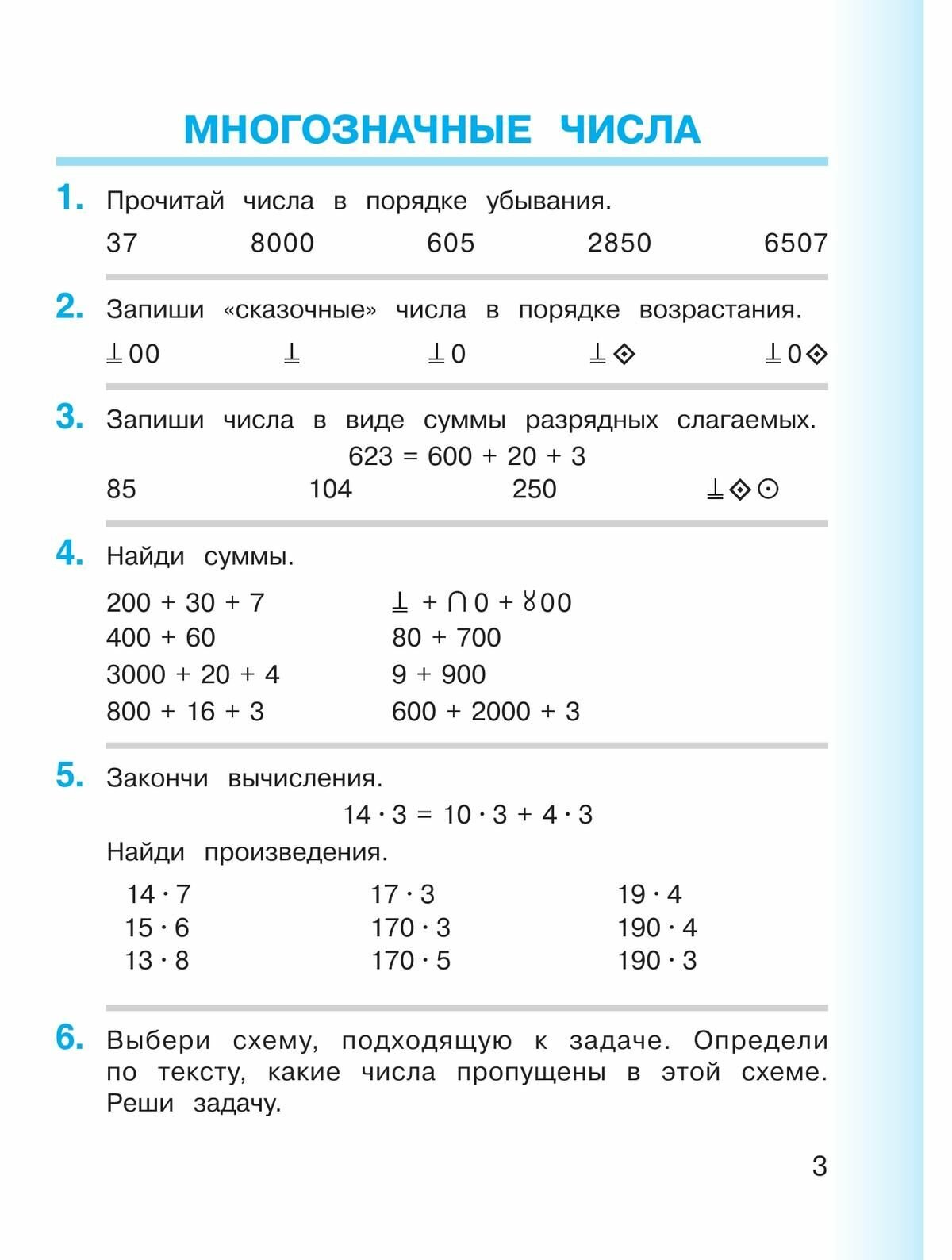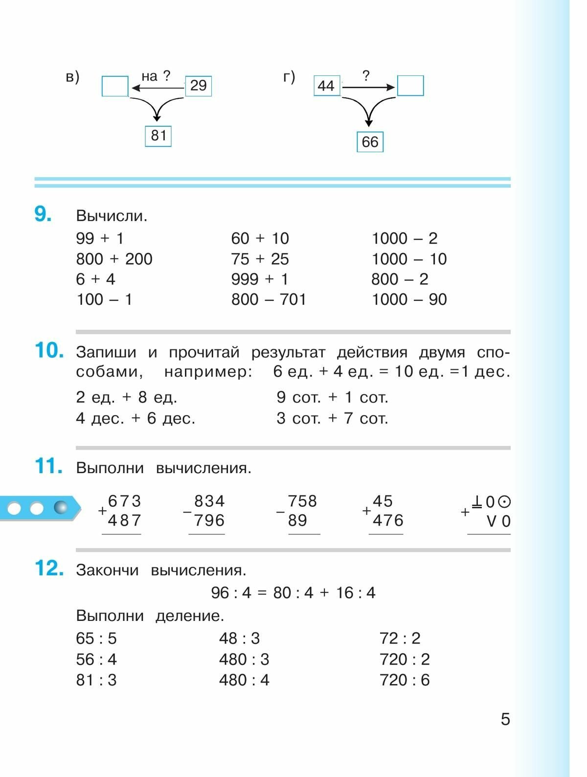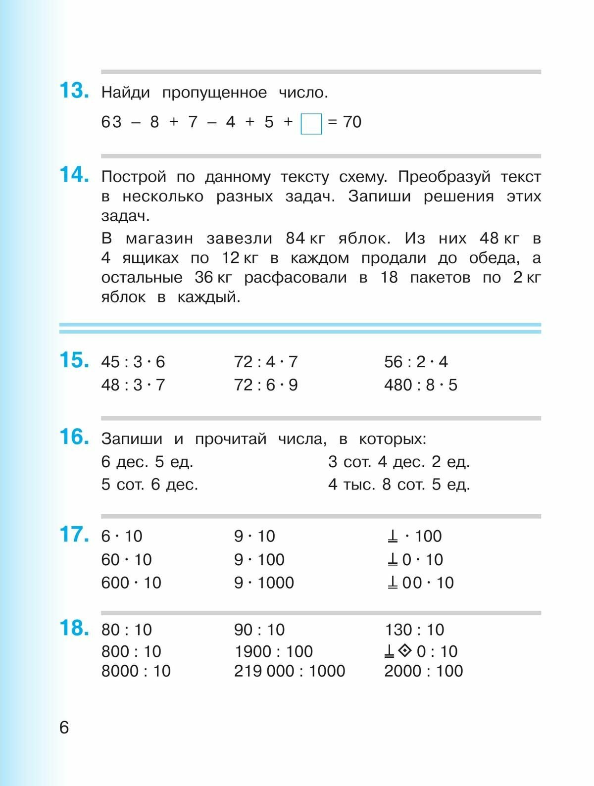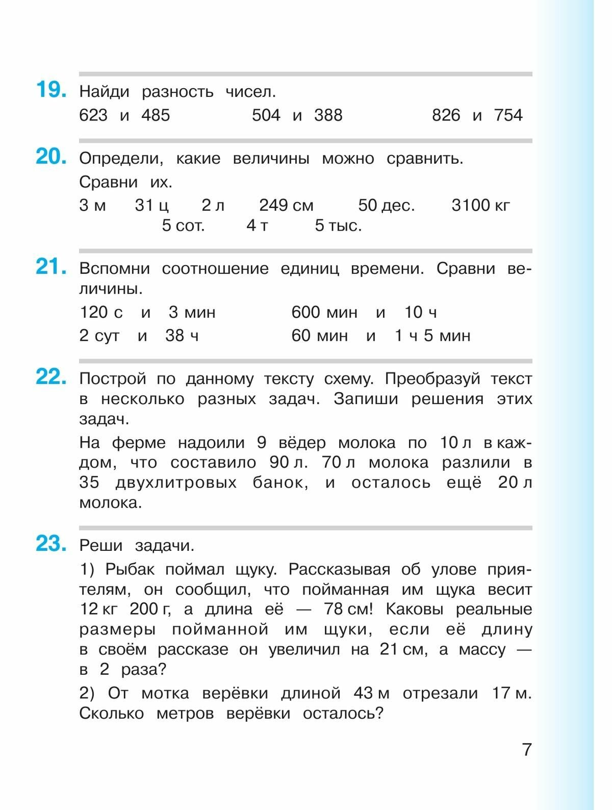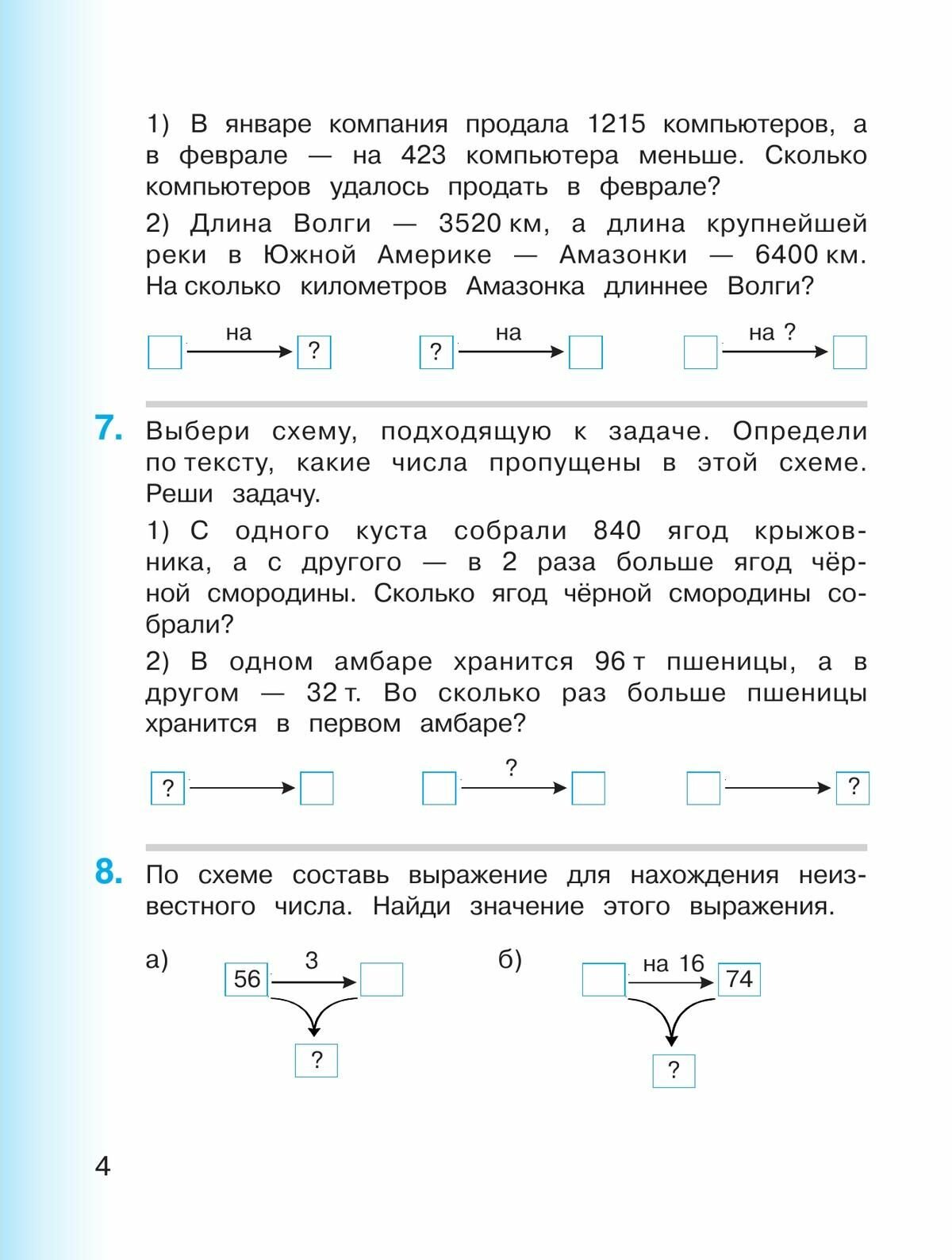 Содержание учебников выстроено с учетом требований к образовательным результатам изучения математики в начальной школе - личностным, метапредметным и предметным. Учебник ориентирован на развитие у ребенка умения действовать не по образцу, а самостоятельно, искать новые способы решения, изобретать собственные средства для достижения цели. В ходе построения элементарных графических и знаковых моделей дети раскрывают основные свойства математических отношений и таким образом входят в мир математических понятий. В учебнике последовательно реализуется цель ясного понимания действительного числа. Число (пока еще только натуральное) сразу рассматривается как отношение величин. Большое место отводится изучению свойств величин в действиях с конкретными предметами и абстрактными моделями. Вычислительные разделы представлены отдельным блоком в конце учебника. В четвертом классе на основе изученных свойств строятся алгоритмы действий с многозначными числами. Кроме отношений, связывающих однородные величины (равенство, "больше - меньше", разностное отношение, отношение кратности и отношение "целого и частей"), четвероклассники изучают связь между величинами разного рода - прямую пропорциональную зависимость величин. Как особый случай пропорциональной зависимости рассматривается зависимость площади прямоугольника от его длины при постоянной ширине. Последняя тема курса посвящена знакомству с обыкновенными дробями и носит факультативный характер. Продолжается работа с текстовыми задачами. Обучение происходит через организацию поисковых действий детей и развернутой дискуссии в классе. Методический аппарат учебника содержит большое число упражнений, которые имеют разнообразную и часто занимательную форму. Во многие из них заложена "ловушка" - задание на первый взгляд обычное, но на самом деле либо не имеющее решения, либо допускающее разные решения, либо требующее уточнения. На полях учебника такие задания отмечены специальным знаком. Значительная часть заданий в учебнике строится таким образом, что, выполняя определенные построения, учащиеся приходят к открытию логических звеньев учебного предмета, а не получают их в виде готовых образцов. Отдельными блоками даются упражнения по выработке графических навыков.