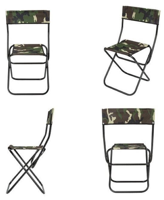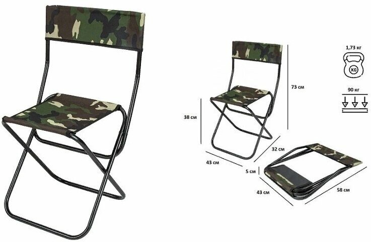 - Прочный качественный стул с удобной спинкой, цвет камуфляж - то, что нужно настоящему рыбаку!