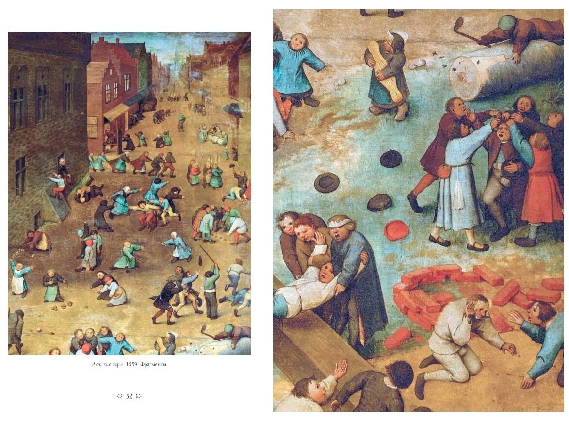 Именно такую книгу о творчестве Питера Брейгеля мне очень хотелось иметь в домашней библиотеке. Да, в этой книге мало текста - но тексты можно почерпнуть в других источниках. Главное здесь - множество увеличенных фрагментов картин Брейгеля. На этих фрагментах можно бесконечно долго рассматривать мельчайшие детали картин. А эта возможность даёт многое для понимания смысла картины и для наслаждения талантом Брейгеля. Ты будто входишь в картину, вступаешь на траву, взлетаешь в небо, балансируешь на одном из рёбер вавилонской башни. А персонажи картин - совсем близко, ты видишь, как они хмурятся или удивляются, что делают их руки, и как из-под скамейки глядит собака. А как Брейгель вырисовывает каждый листочек на деревьях и травах! Вот для этого разглядывания, для этого наслаждения и создана эта книга. Великолепно - и спасибо создателям книги!