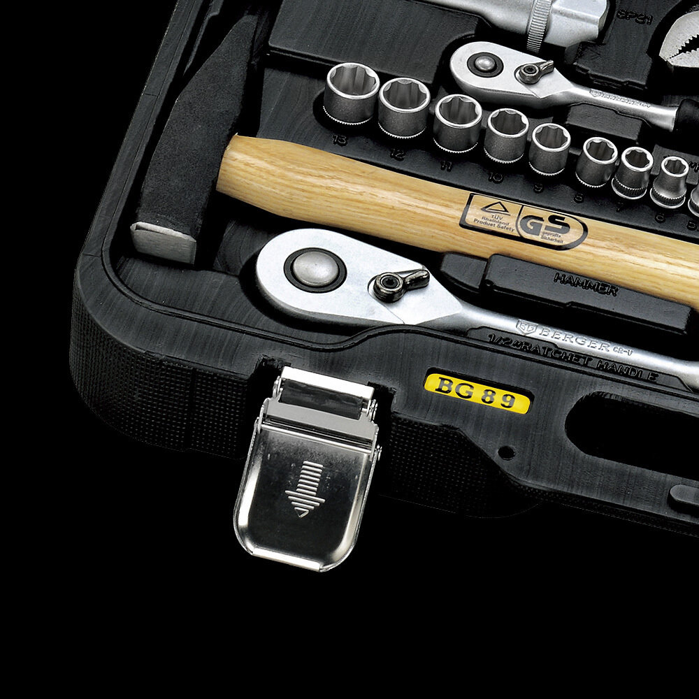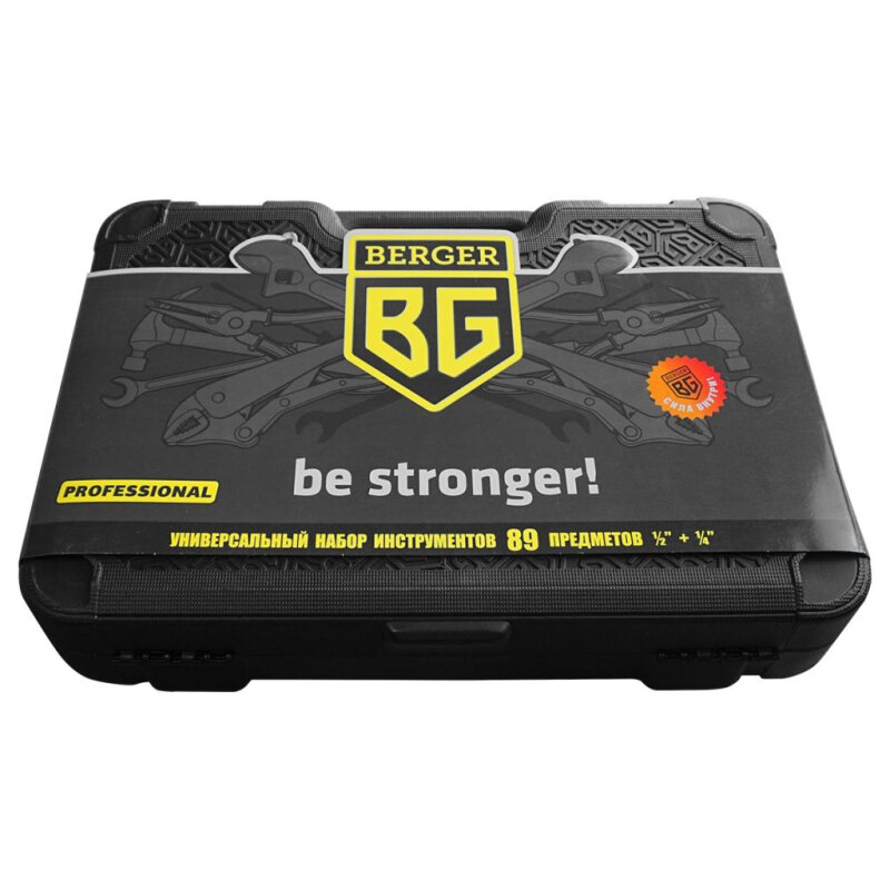 Универсальный набор инструментов 89 предметов Berger BG предназначен для выполнения различных ремонтных и слесарно-монтажных работ. Все предметы из набора изготовлены из высокопрочных инструментов и обладают продолжительным эксплуатационным ресурсом. В пластиковом кейсе каждый инструмент зафиксирован в определенном месте. Бокс оснащен ручкой для удобства транспортировки и защелками для плотного закрывания.
