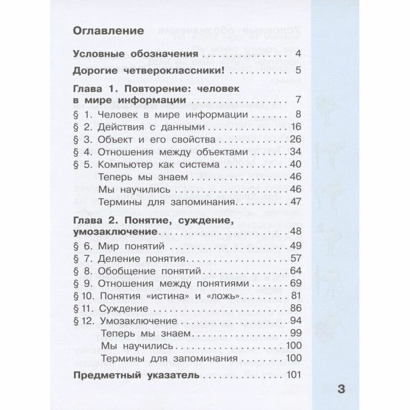 Учебник для 4 класса входит в состав УМК по информатике для начальной школы (2-4). Для каждого класса предлагаются: учебник, рабочие тетради, контрольные работы, комплект плакатов, методическое пособие для учителя, электронные материалы на сайте издательства.