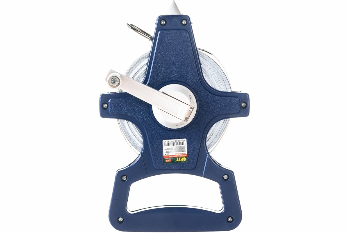 Рулетка землемерная, синий открытый корпус, фибергласовая лента 20 м применяется на открытой местности для замеров больших расстояний. Для фиксации острый штык вставляют в грунт. Лента изготовлена из фибергласа, обладает прочностью, эластичностью и коррозионной стойкостью, что повышает её рабочий ресурс.