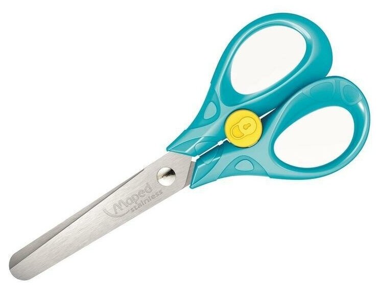 Школьные ножницы оснащены уникальной системой блокировки лезвий для повышения безопасности. Эргономичные кольца разработаны специально для детской руки.