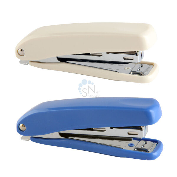 Настольный степлер выполнен в пластиковом корпусе и обладает средними размерами.