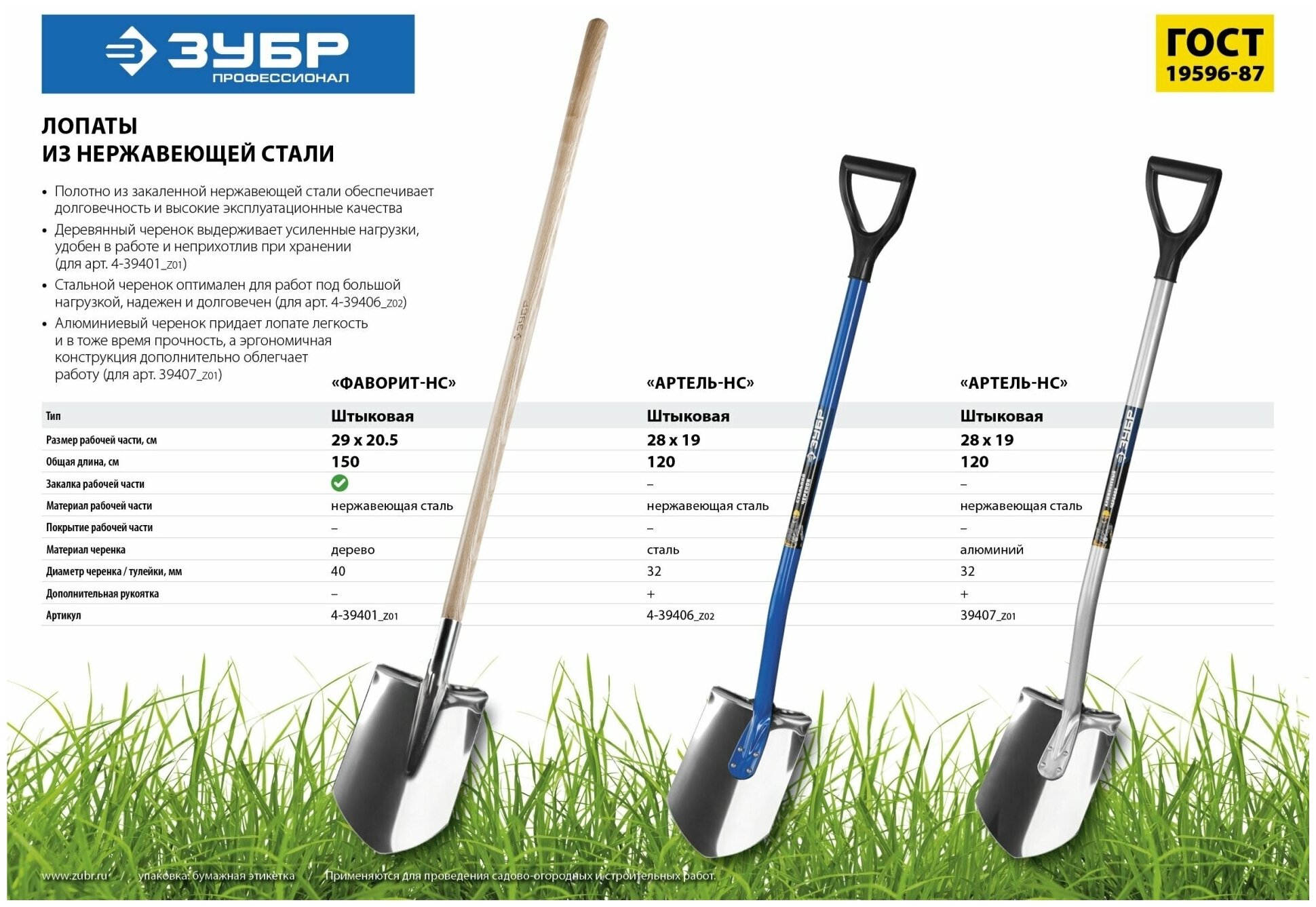 Сервис сравнения цен СкидкаГИД предлагает сравнить цены на товар «Лопата штыковая Зубр Профессионал Артель для земляных работ (39407_Z01) (размер: средний)»