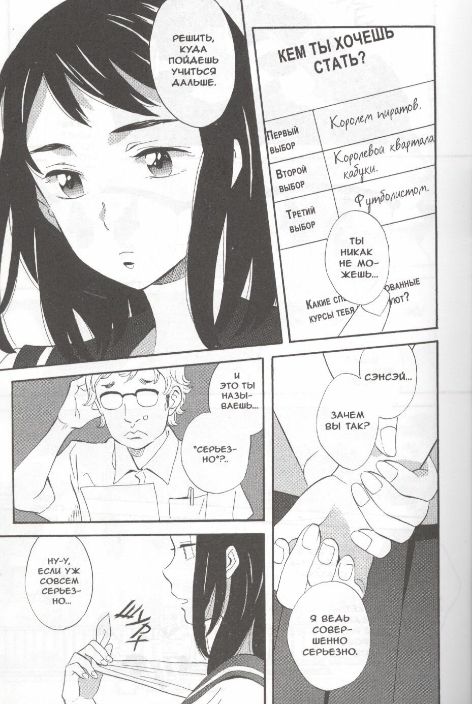 В этом томе 3 истории, которые совершенно различаются и несут в себе разный посыл, но каждая из них по своему хороша. После каждой работы остается небольшое грустное послевкусие, вызванное вовсе не печальным сюжетом, а мыслями, которые навевает происходящее в манге.