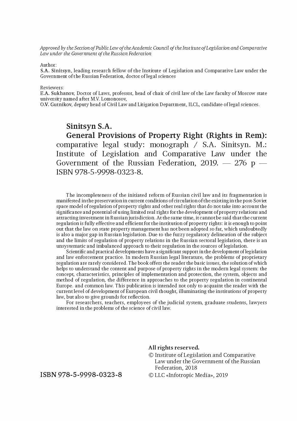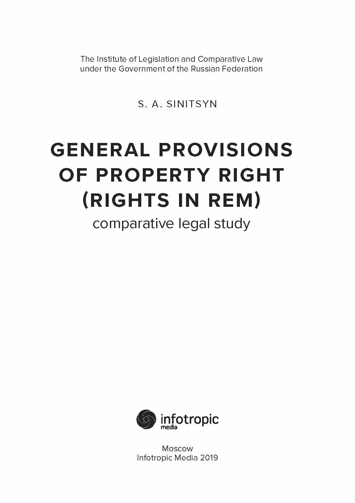 Общие положения о вещном праве. Сравнительно-правовое исследование (Синицын Сергей Андреевич); Инфотропик Медиа, 2019