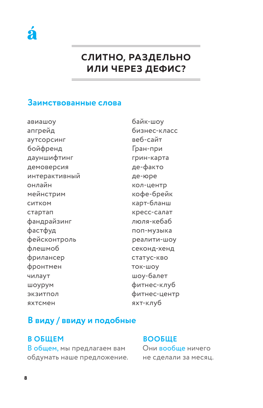 Я отказалась от этой книги. Она представляет собой буквально несколько страничек уж не знаю откуда переписанных грамматических правил ,а дальше там - просто рабочая тетрадь. О чем никто не предупреждал. То есть процентов 80 этой "книги" представляют собой чистые разлинованные листочки, на которых можно писать упражнения (мелким шрифтом внизу задание). Знаете, за такие деньги я могу купить пачку тетрадей и работать в них, руководствуясь сайтом "грамота ру", если приспичит. Я думала, там будут новые правила (известно, что они появились), какие-то важные и каверзные моменты грамматики... а это просто ХАЛТУРА.