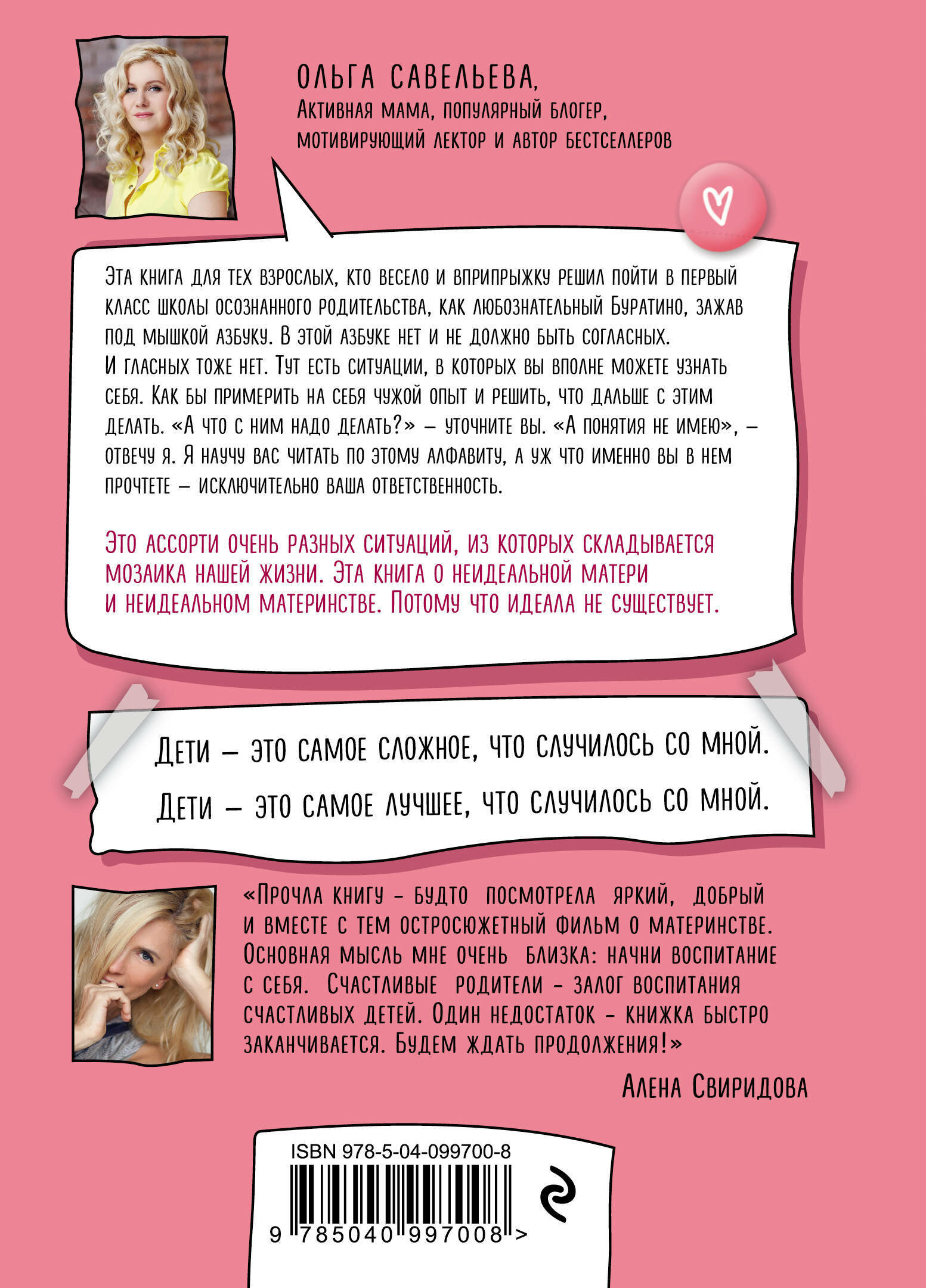 .Ольга Савельева, известный блогер и автор нескольких книг, просто живет и любит своих детей, ведь главная задача родителя - научиться искать счастье в любом дне, в любом моменте, и универсальных правил здесь нет и не может быть. Эта книга - букварь для взрослых, алфавит родительских прозрений, для тех, кто понял, что главное в любом родительстве - осознанное стремление к счастью.