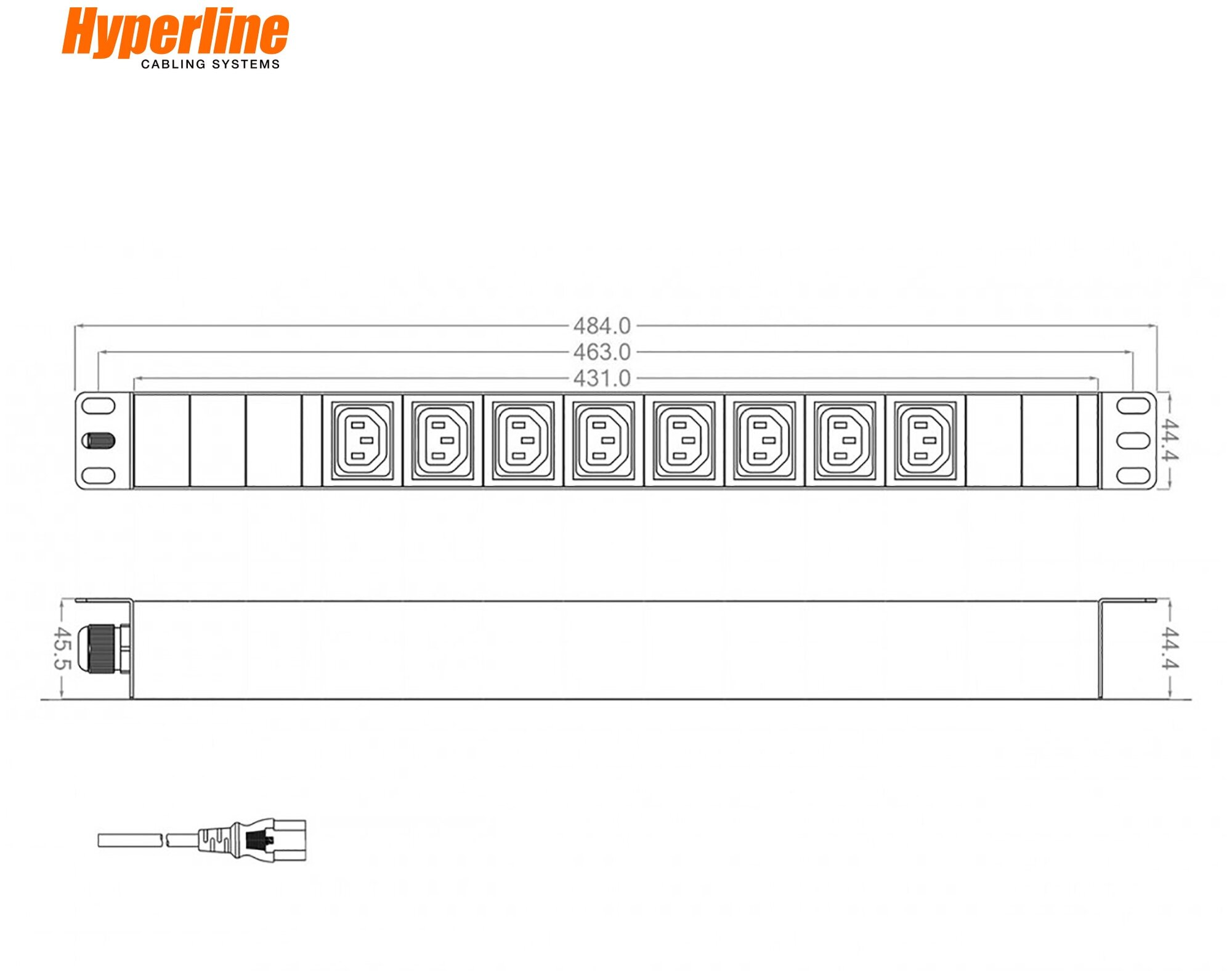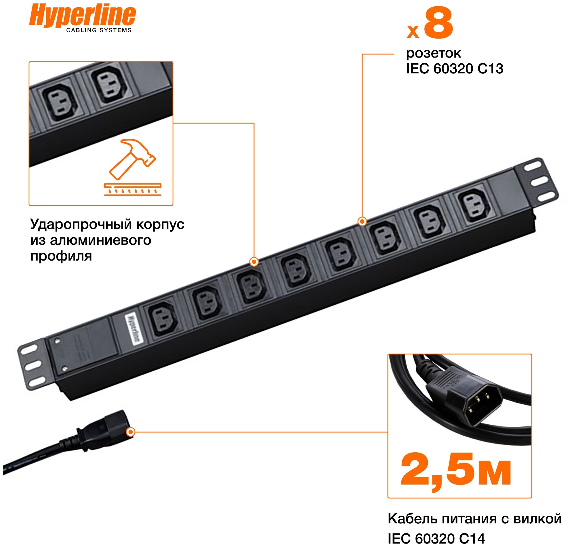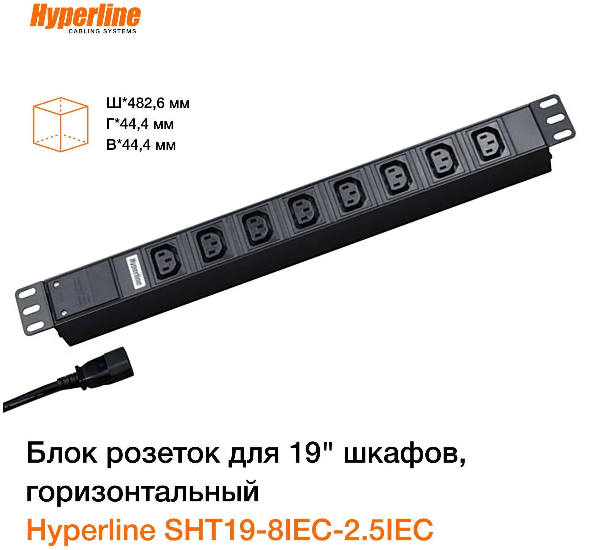 Горизонтальный блок розеток для 19" шкафов Hyperline »