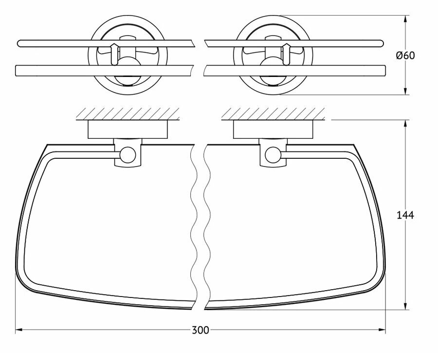 Полка ELL 013 - удобный и практичный атрибут интерьера ванной комнаты для хранения предметов личной гигиены. Модель выполнена из долговечной латуни, не подверженной коррозии и прочного матового стекла. Способ крепления - настенный.