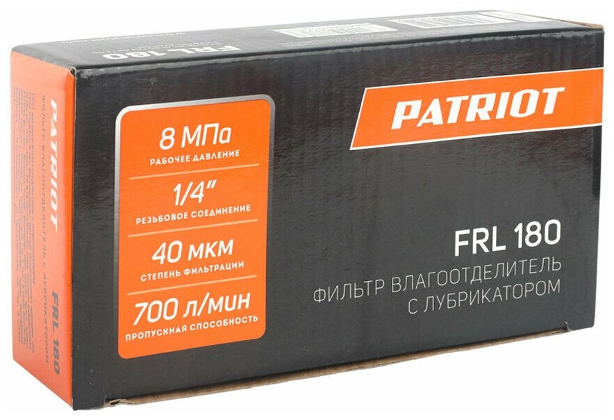 Фильтр PATRIOT FRL 180 с регулятором предназначен для удаления влаги и твердых частиц из поступающего из компрессора в инструмент воздуха. Лубрикатор предназначен для насыщения воздуха парами масла.