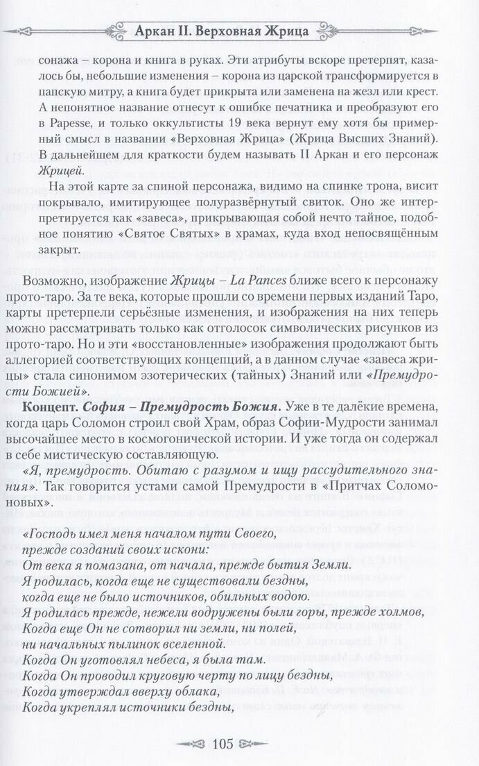 Очень большое количество информации по каждому аркану. Информация обширная, разрозненная, плохо структурированная, преподнесенная очень трудным для восприятия языком. Больше всего напоминает научный труд философской направленности. Очень трудно назвать целевую аудиторию для данного издания. Думаю , что это очень узкая часть читательской аудитории эзотерической направленности, интересующаяся исторической и причинно-следственной составляющей арканов.