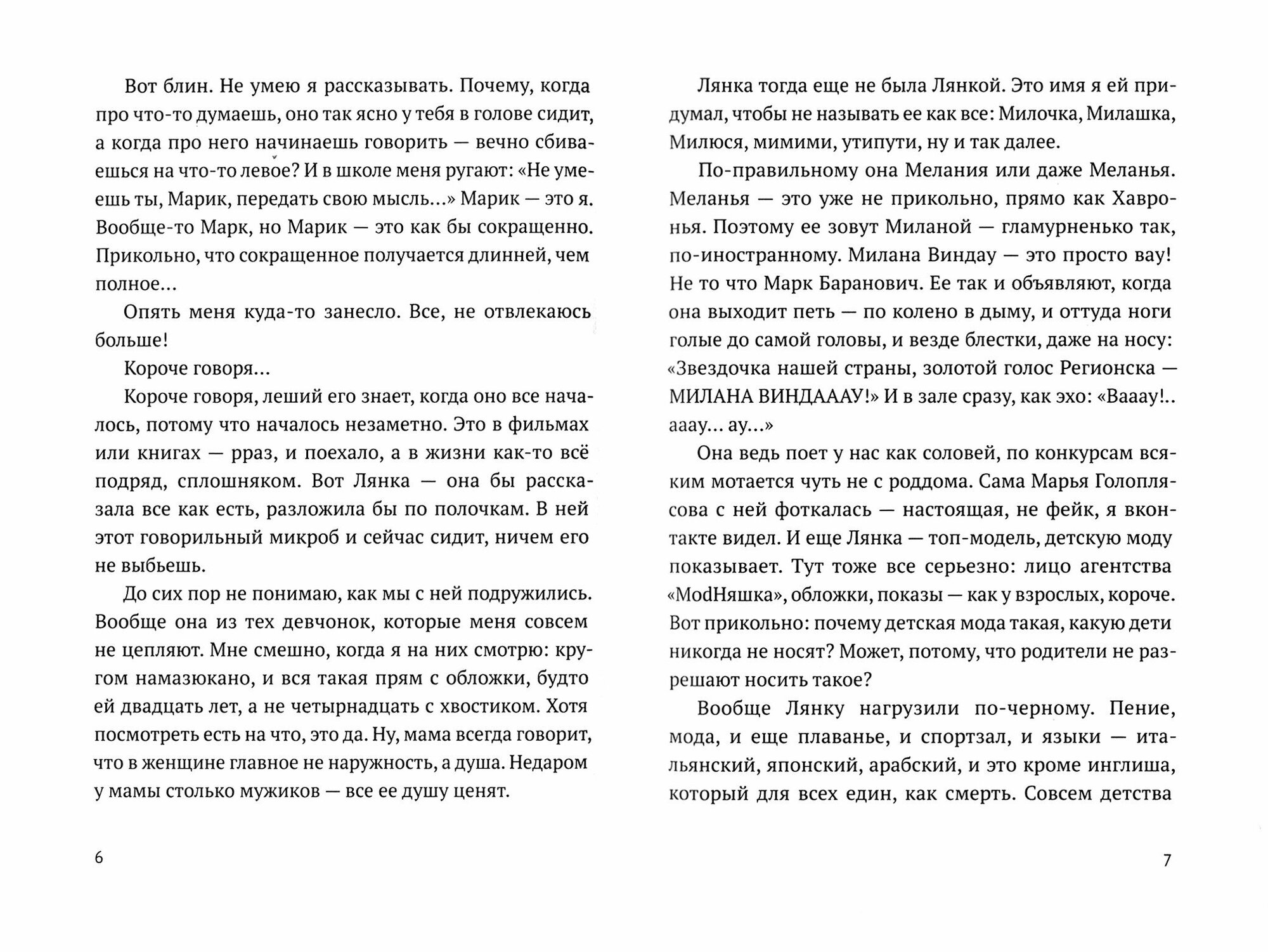 Герои этой книги Марик-Кошмарик и Милана, а попросту Лянка, убегают из дома. Подростки не находят понимания в своих семьях. Нет, их любят и все такое, но любят эгоистично, по-своему. Мама Марика устраивает свою личную жизнь, постоянно меняя мужей, так, своего первого, родного отца мальчик совсем не помнит. Помнит только единственное глубокое эмоциональное потрясение от поездки с отцом на Синее озеро. Где находится это озеро, Марк не знает, но уверен, что путешествие было на самом деле.