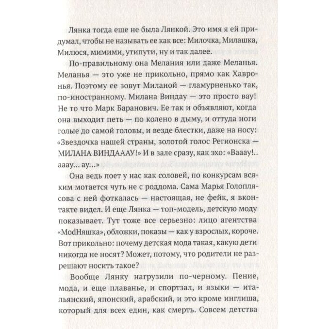 Ярко проиллюстрирована жизнь различных слоев общества: быт, культура, цели. У каждого они свои - так же как и смысл существования. На примере Лянки и Марка - автор поднимает букет человеческих ценностей и их отсутствие.