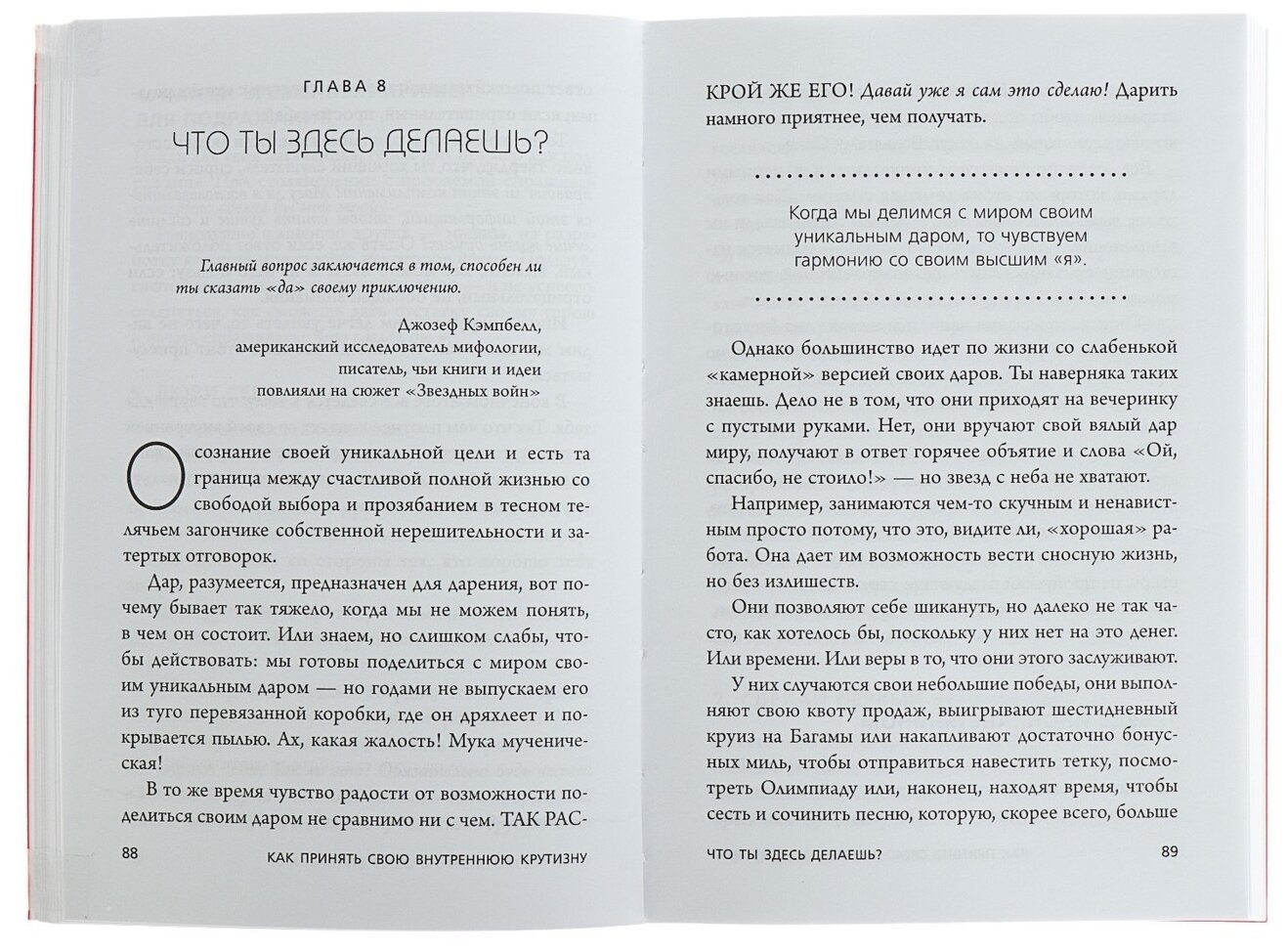 Книга просто восхитительная. Долго ждала этой книги в экономном варианте, чтобы не дорого и в мягкой обложке. Издание просто волшебное. Книга полна мотивации, изложена на легком и близком тебе языке, читается на одном дыхании. Вообщем, если у вас не хватает мотивации, чтобы поднять энное место с дивана, то она для вас.