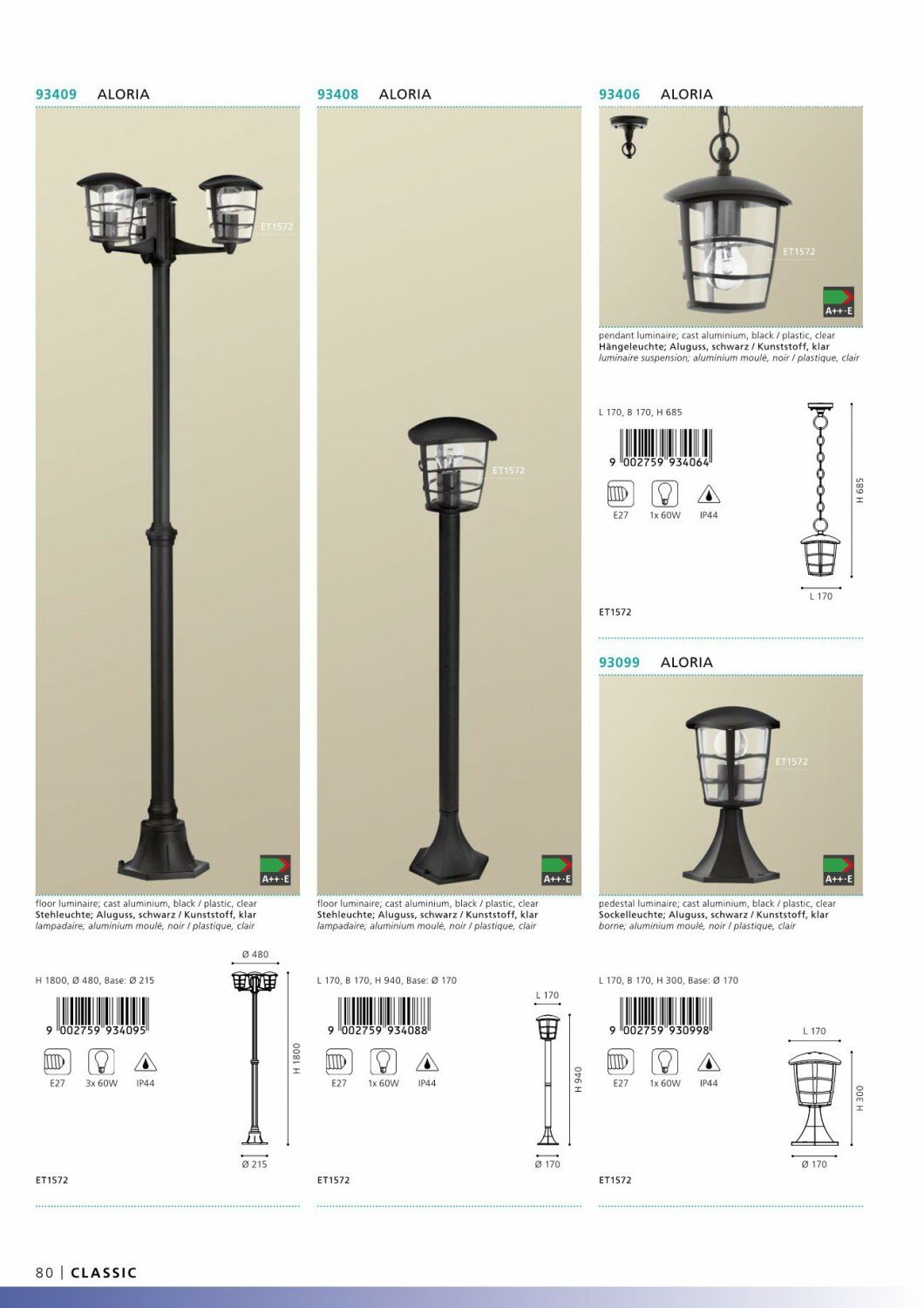 Наземный фонарь уличный Aloria - продукт известной компании Eglo (Австрия). Имеет максимальную мощность 60 Вт, освещает площадь до 3 кв. м. Отлично подойдет для таких мест, как дача, сад. Впишется в интерьеры следующих стилей: модерн.