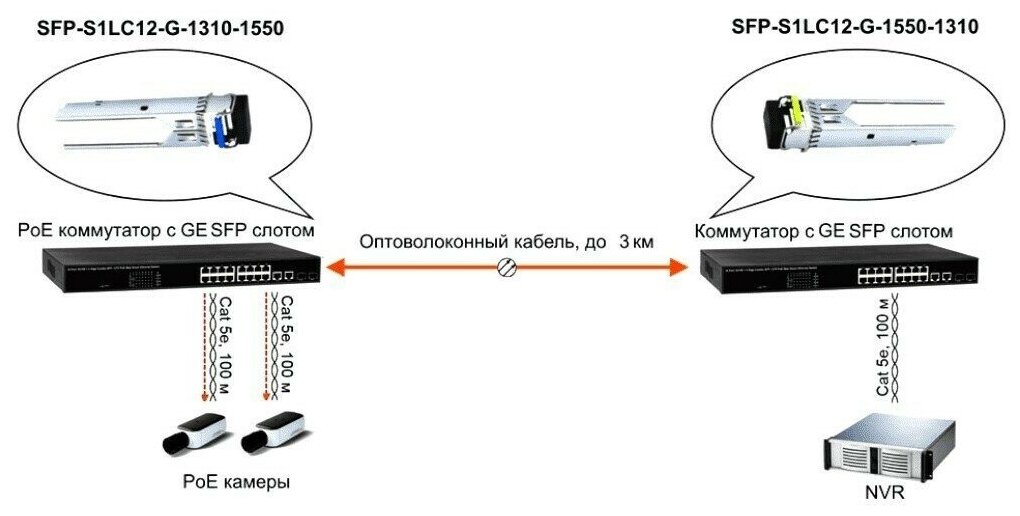 Модули SFP-S1LC12-G-1310-1550 с успехом могут быть использованы для подключения самых различных сетевых устройств с SFP слотами – коммутаторов, медиаконвертеров и тд.