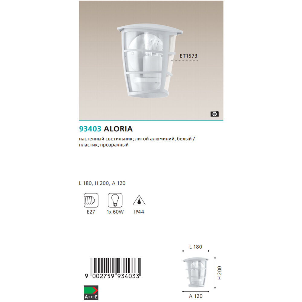 Бра Aloria - продукт известной компании Eglo (Австрия). Имеет максимальную мощность 60 Вт, освещает площадь до 3 кв. м. Отлично подойдет для таких мест, как гостиная, спальня, кухня, прихожая и коридор. Впишется в интерьеры следующих стилей: современный.