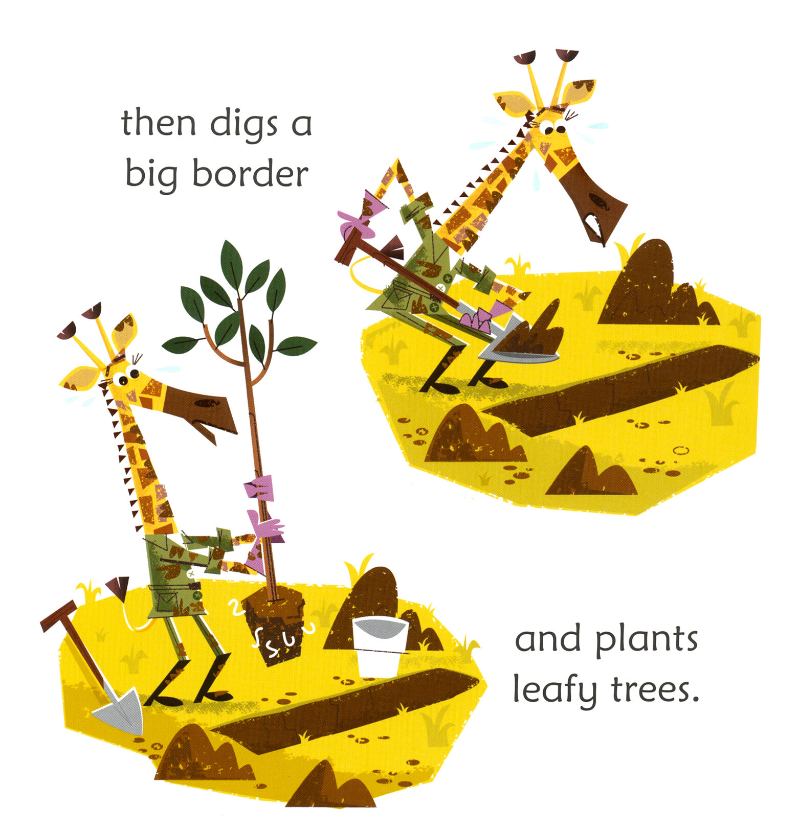 Неординарный день из жизни жирафа: много неожиданных и забавных поворотов фантастических событий. Но все закончится хорошо :) Огромные иллюстрации с детальной прорисовкой помогают начинающим читателям понять смысл прочитанного, а рифмы лучше запомнить буквенно звуковые сочетания.