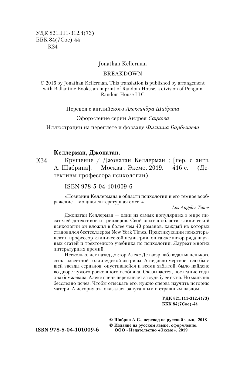 Сервис сравнения цен СкидкаГИД предлагает сравнить цены на товар «Книга: Крушение (Шабрин Александр С. (переводчик), Келлерман Джонатан); Эксмо, 2019»