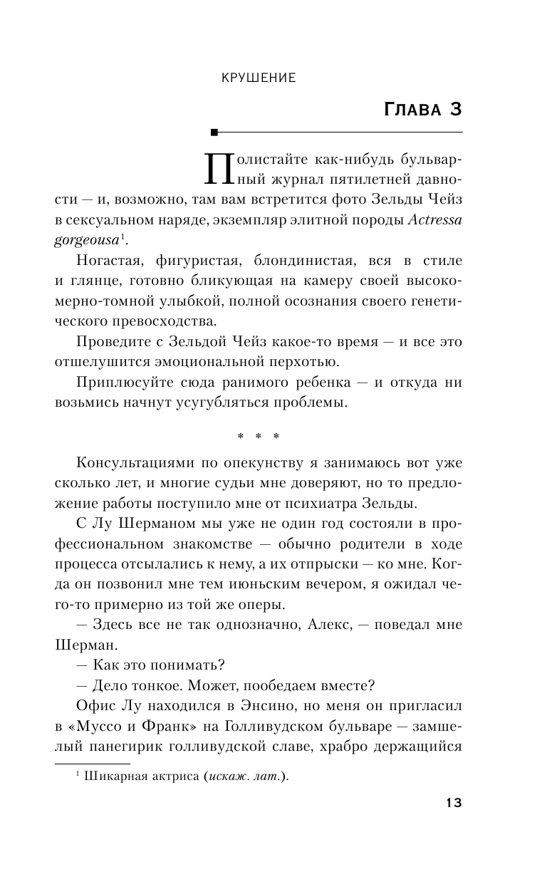 Несколько лет назад доктор Алекс Делавэр наблюдал маленького сына известной голливудской актрисы. А недавно мертвое тело бывшей звезды сериалов, опустившейся и всеми забытой, было найдено во дворе чужого роскошного особняка. Оказывается, последние годы она бомжевала. Алекс очень переживает за судьбу ее сына. Но мальчик бесследно исчез. Чтобы отыскать его, нужно сперва изучить историю матери. А история эта оказалась запутанным и страшным пазлом…