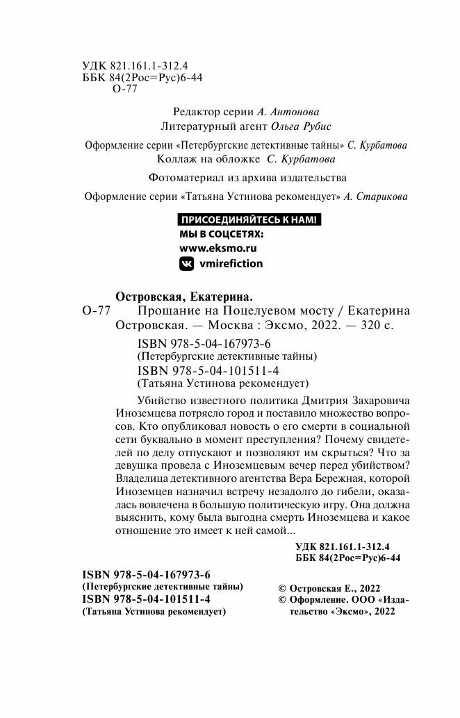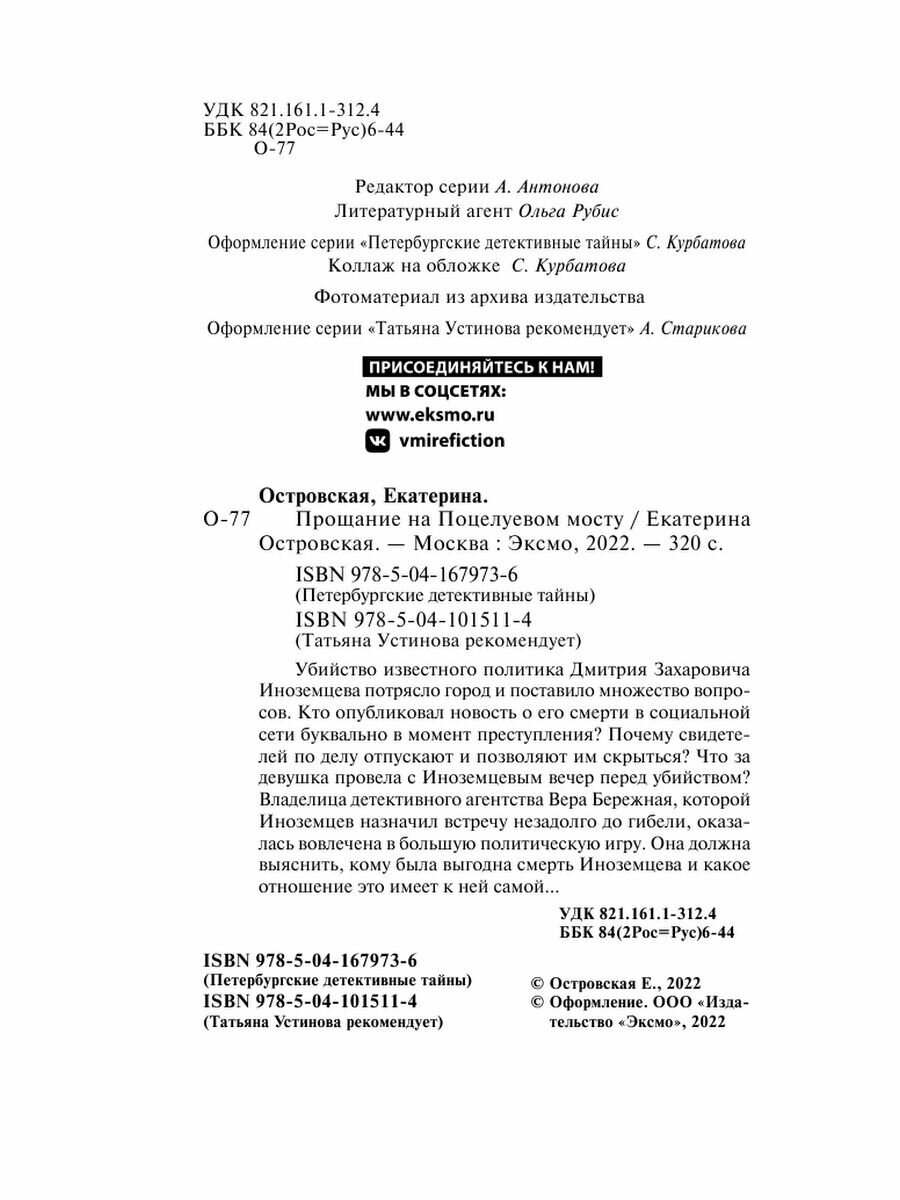 Прощание на Поцелуевом мосту (Островская Екатерина Николаевна); ООО "Издательство "Эксмо", 2019