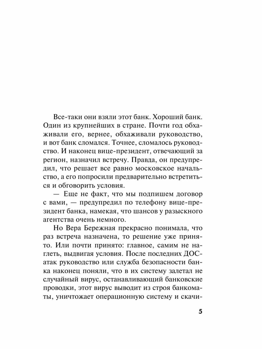 Убийство известного политика Дмитрия Захаровича Иноземцева потрясло город и поставило множество вопросов. Кто опубликовал новость о его смерти в социальной сети буквально в момент преступления? Почему свидетелей по делу отпускают и позволяют им скрыться? Что за девушка провела с Иноземцевым вечер перед убийством?. Владелица детективного агентства Вера Бережная, которой Иноземцев назначил встречу незадолго до гибели, оказалась вовлечена в большую политическую игру Она должна выяснить, кому была выгодна смерть Иноземцева и какое отношение это имеет к ней самой…
