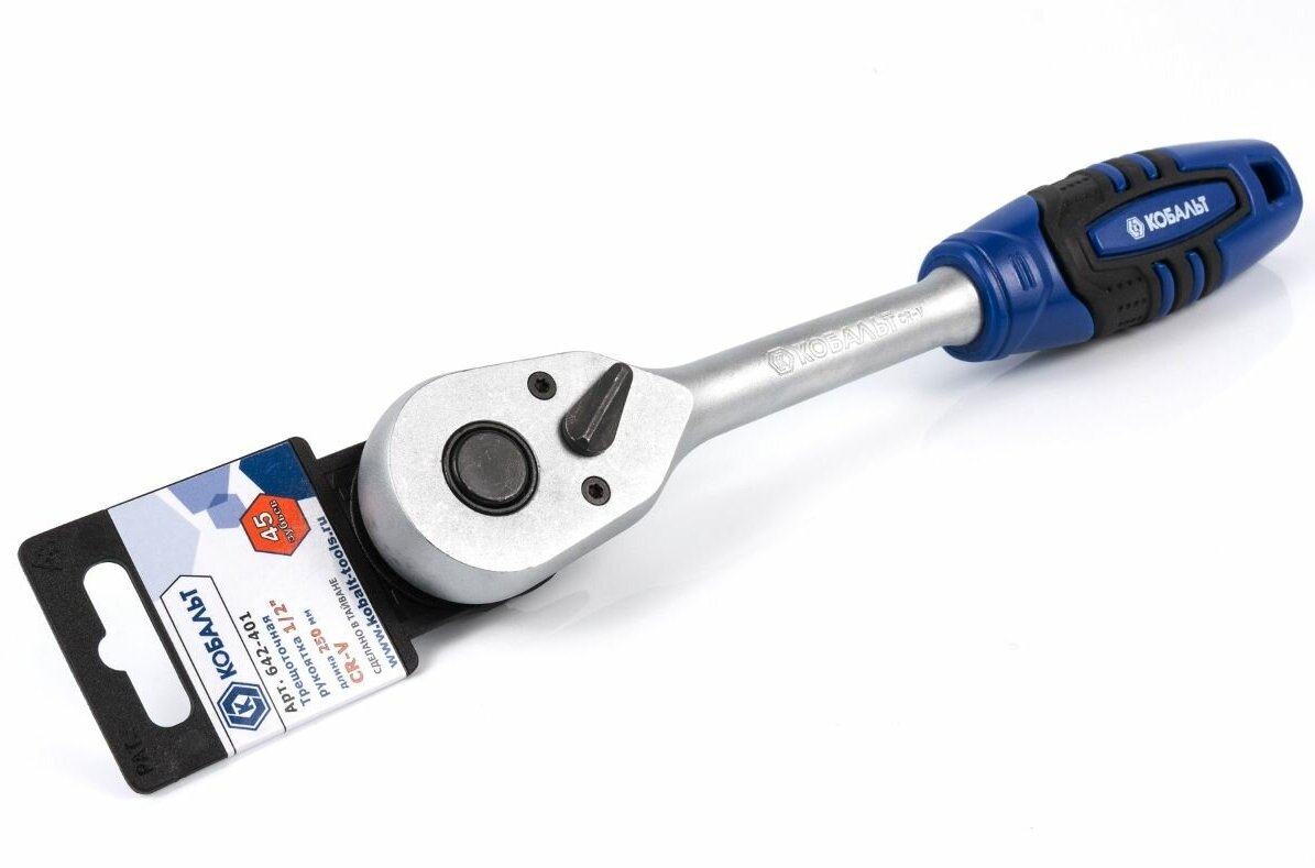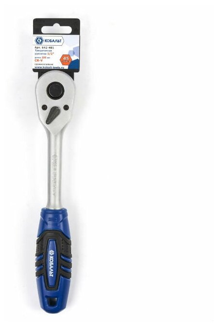 | Наименование модели | Трещотка 1/2" 250 мм, 45 зубьев, КОБАЛЬТ, флажковый переключатель, подвес |