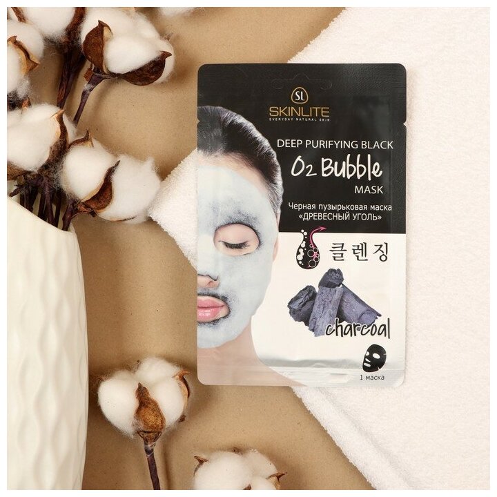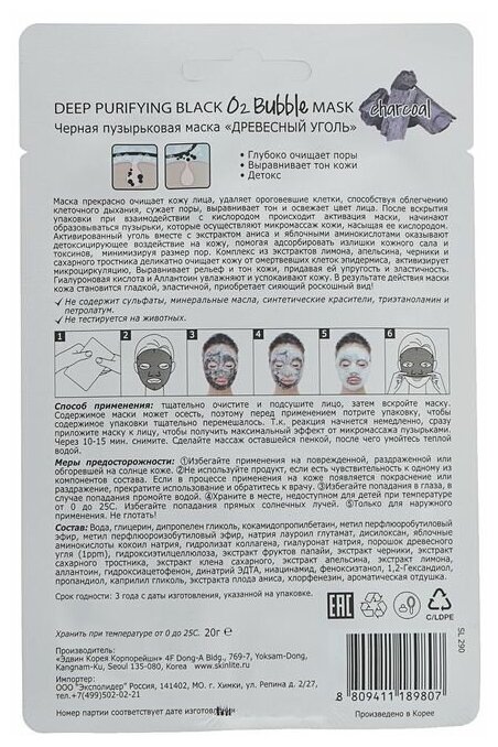 Маска для лица Skinlite Черная пузырьковая Древесный уголь 20г Adwin Korea Corporation