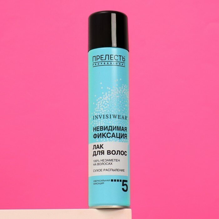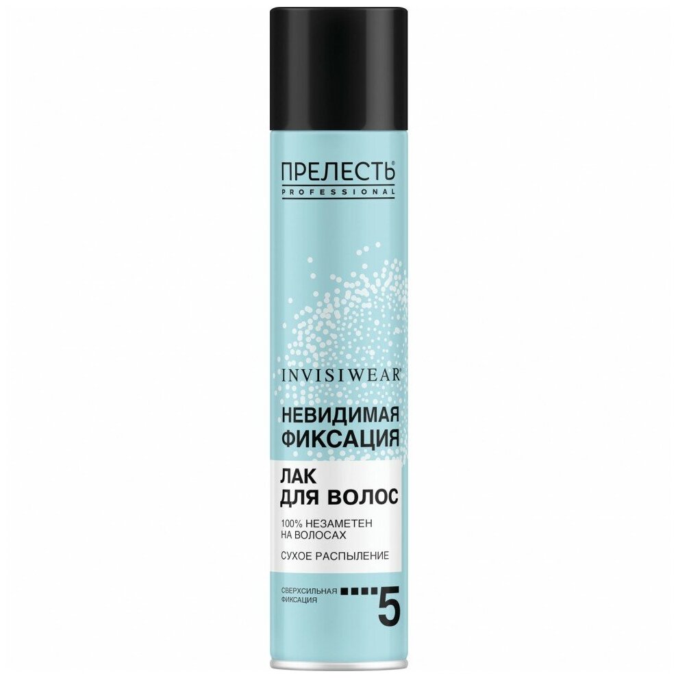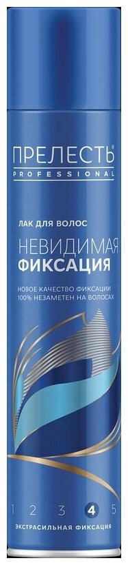 Новинка 2017 года!Новая серия Прелесть Professional «Невидимая фиксация» – Ваш помощник в создании идеального образа.Описание лака для волосТехнология микро-распыления делает лак незаметным на волосах.Экстрасильная фиксация при любых погодных условиях до 24 часов.Ультралегкая формула позволяет волосам оставаться подвижными и мягкими на ощупь.Лак высыхает при нанесении меньше 1 минуты.Контроль над пушением и защита от негативных факторов окружающей среды.Объем: 300 куб.см.Все средства серии «Невидимая фиксация» содержат комплекс витаминов и натуральных экстрактов DiProFactor, благодаря чему обеспечивается двойной усиленный эффект – длительная естественная фиксация без склеивания волос и их защита в любых климатических условиях.