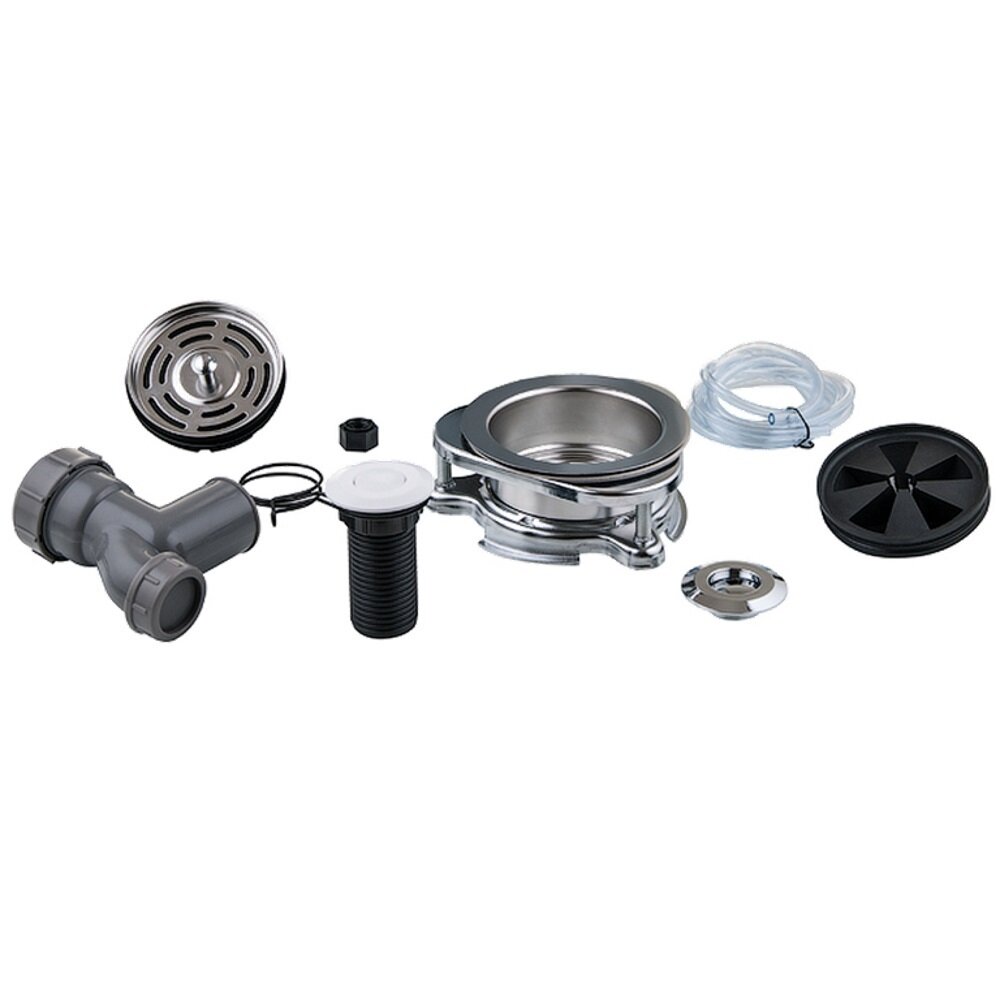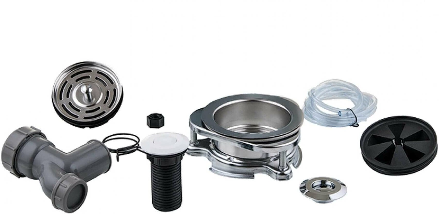 - Комплект пневмовыключателя (кнопка белая и хромированная)- Фильтрующая сетка с резиновой пробкой- Крепежный узел к мойке с резиновым экраном- Сливная трубка с пружинным хомутом