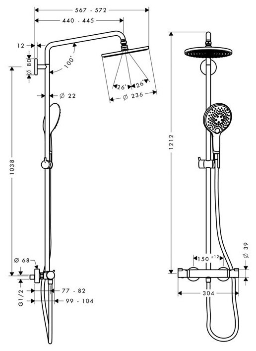 - Душевая стойка от Hansgrohe с термостатом