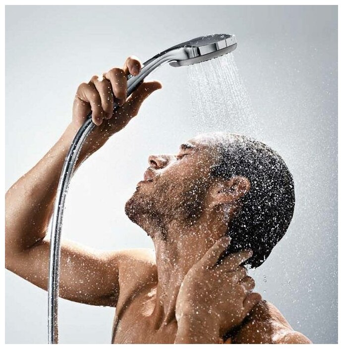 Удивительно прост, не требует ремонтных работ, подходит любой душевой или ванной комнате. Просто снимите старый ручной душ и закрепите Raindance на стене. Один щелчок – и ручной душ становится верхним! Вода льется широким мягким потоком на голову и плечи. Ясный, минималистичный дизайн делает продукт центральным элементом ванной комнаты.