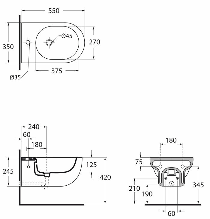 | Тип установки сантехники | подвесной |